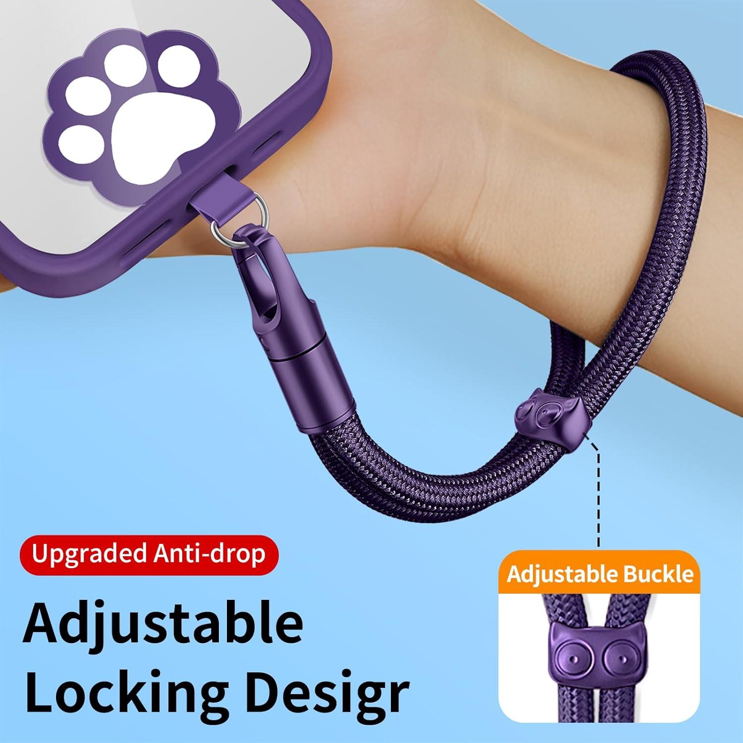 360° Swivel Phone Lanyard & Wrist Strap: Anti-Drop, Adjustable with Fishing Line Core and All-Metal Lock(Purple)