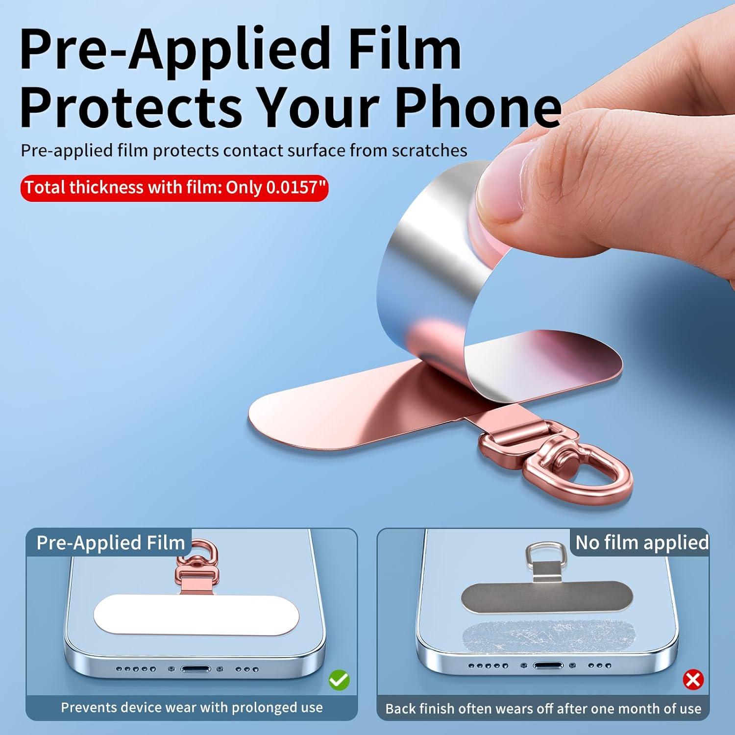 【3-Second Tool-Free Phone Lanyard Attachment】 No glue, no tools, no hassle. Install this phone lanyard attachment in seconds: (1) Thread the stainless steel plate through your case's charging port, (2) Attach your favorite strap. Removes cleanly without residue, making it perfect for switching cases.