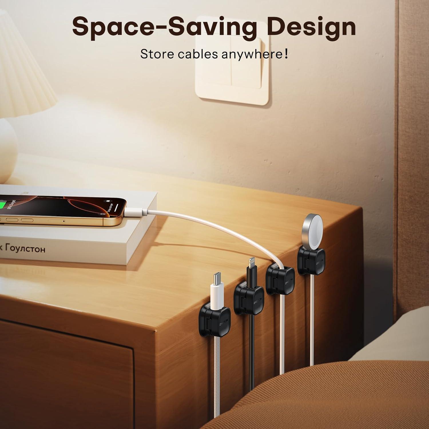 【Compact Neat& Lightweight】: Only Weight 2g. These small cord organizer for desk fit easily in tight spaces to keep your desktop, nightstand, or car clutter-free. Each set includes 6 clips to manage cables on desks, shelves, walls, or in your car. Say goodbye to messy cords — charger organizer smart desk and office accessory