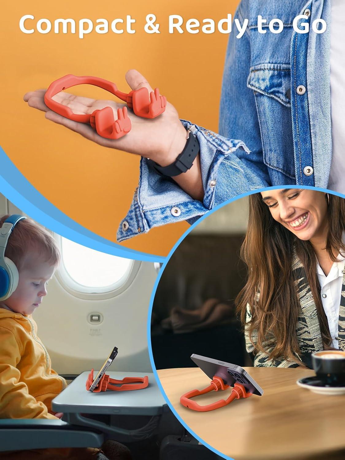Ultra-Portable Travel Must Have Multi-Purpose Tablet Stand for Every Adventure: Weighing just 1.4 ounces and compact at 3.1in x 4.5in, this lightweight cellphone stand holder is your perfect travel companion. Effortlessly use it across multiple scenes: from your office desk to the kitchen counter, cozy bedroom nightstand, or even on an airplane for hands-free entertainment. It's an essential portable cell phone accessory for anyone seeking convenience and flexibility in their daily life