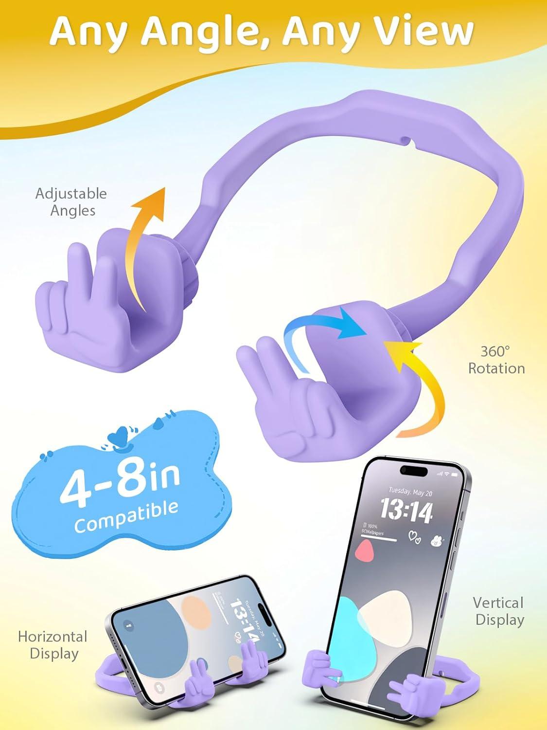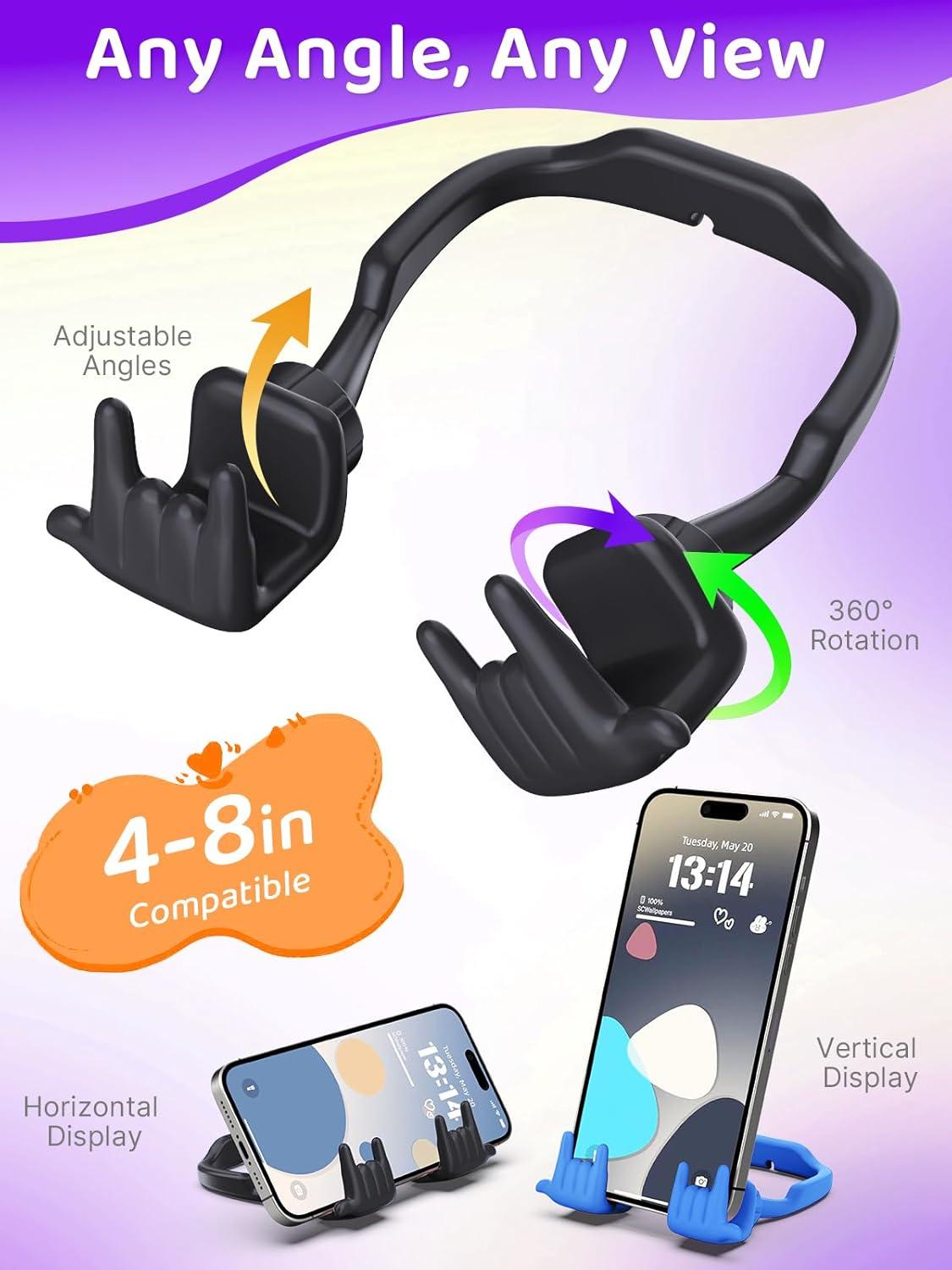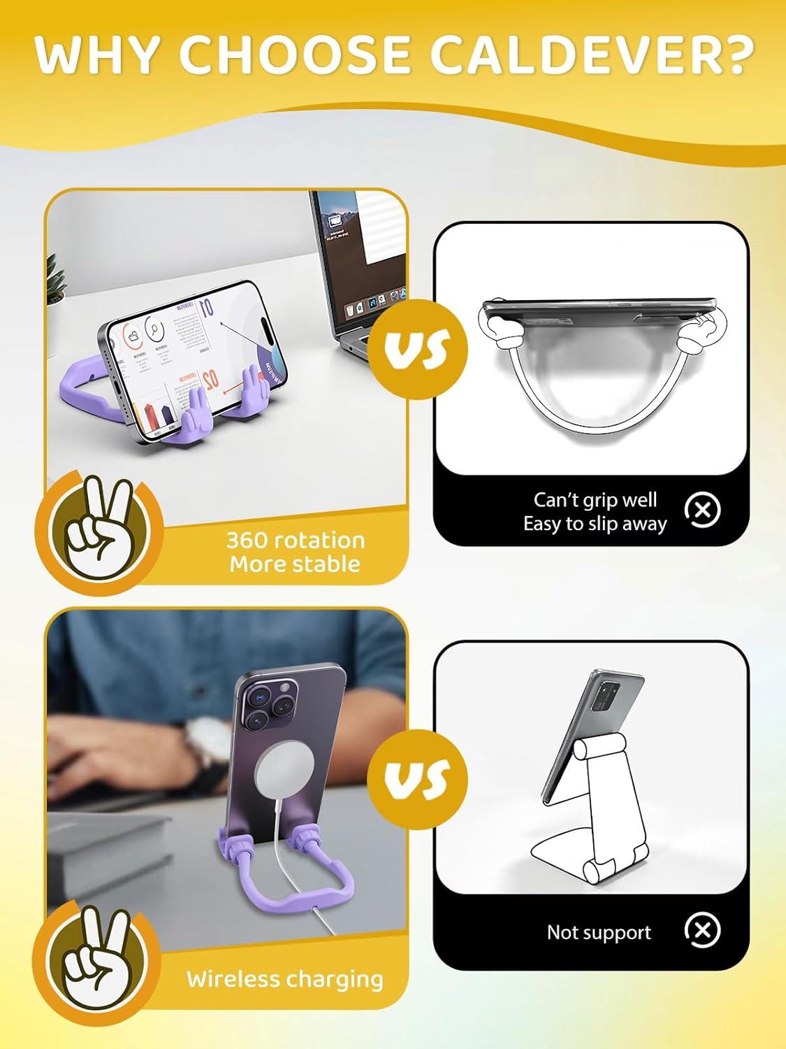 Patented 360° Rotation & Adjustable Angle Phone Holder for Desk: Discover unparalleled viewing flexibility with our CALDEVER peace sign thumbs phone stand, featuring an exclusive 360-degree rotating head and unique adjustable wrist angle; Seamlessly switch between horizontal and vertical screens, finding your perfect 0-40° viewing angle for any task; This universal cell phone holder ensures ultimate stability for your phone or iPad mini, making it the ideal phone stand for desk or table
