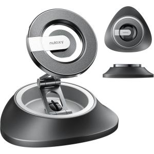 Nulaxy 2 Pack Dual Folding Cell Phone Stand, Fully Adjustable Phone Holder for Desk, Compatible with Phone 16 15 14 13 12 11, Nintendo Switch, All Phones, Black & Silver(Black & Silver)