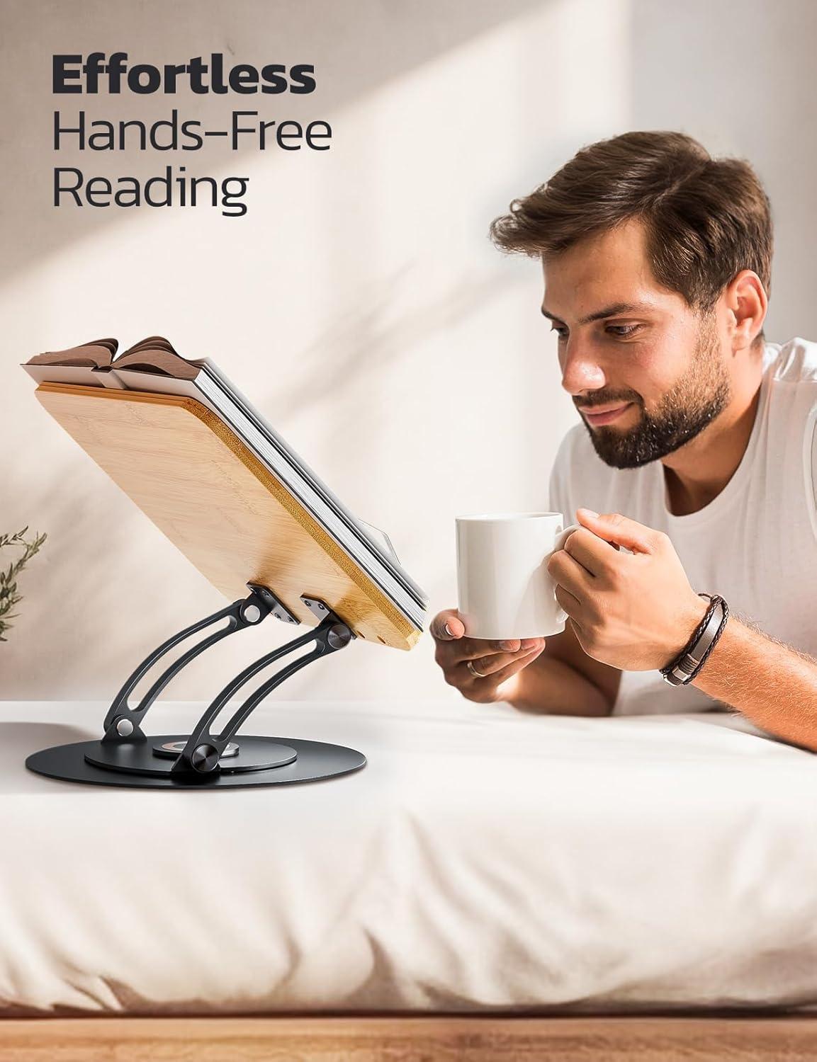 Comfortable Reading Experience: Tailor your reading angle and height effortlessly with this ergonomic book holder, to enjoy a comfortable hands-free reading experience. The book stand for reading is designed to alleviate neck, shoulder, and back strain, transforms your reading sessions into a serene, hands-free journey of relaxation and ease.