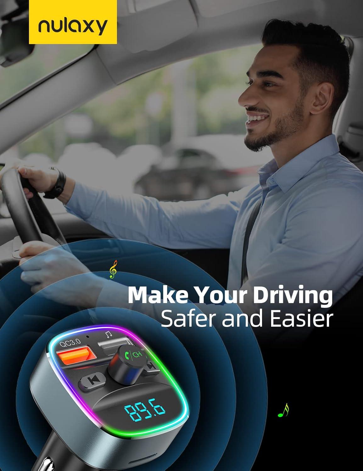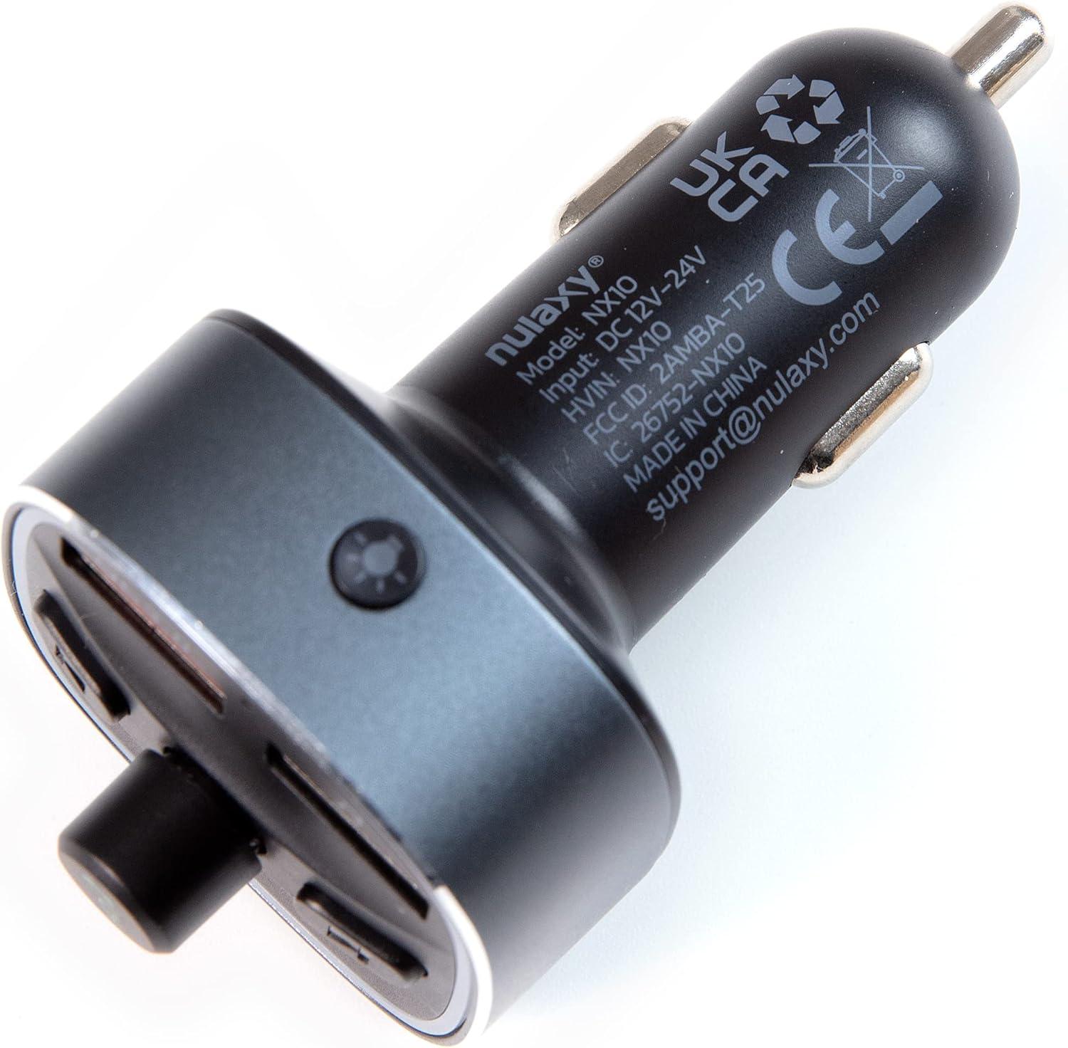 Nulaxy Bluetooth FM Transmitter, Bluetooth Car Adapter with Dual USB Charger Wireless Radio Car Kit MP3 Player Support TF Card & USB Disk, Hands-Free Calling, 7 Colors Led Backlit Light, Black(Grey)