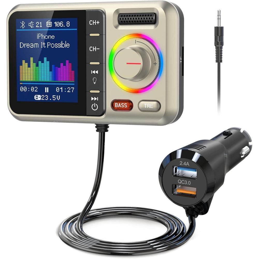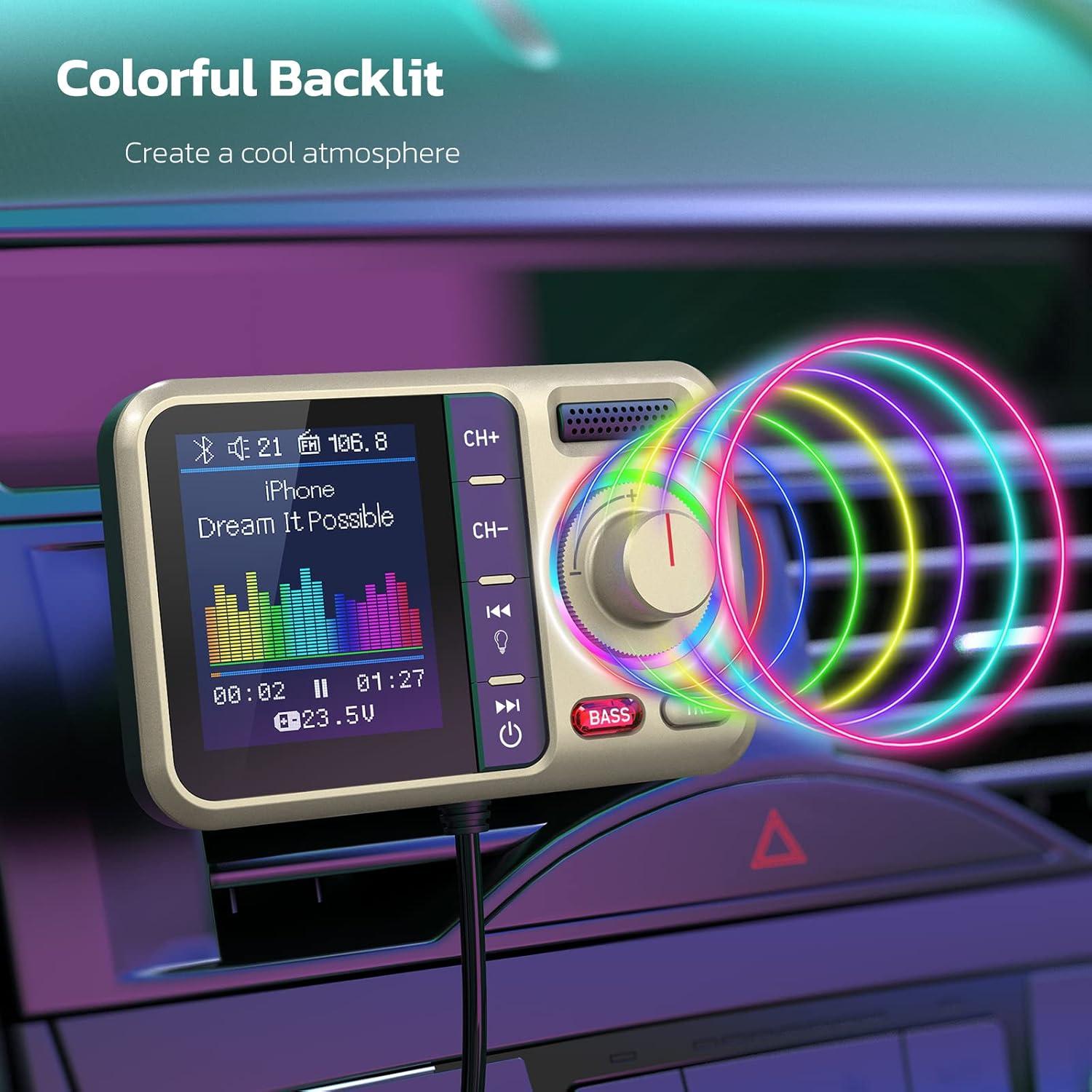 Nulaxy Bluetooth FM Transmitter for Car, Wireless Car Bluetooth V5.0 Adapter with Big Color Screen, Support QC3.0 Fast Charging, Hands-Free Call, MP3 Music Player BASS&TRE Booster, TF Card AUX-KM28(Yellow)