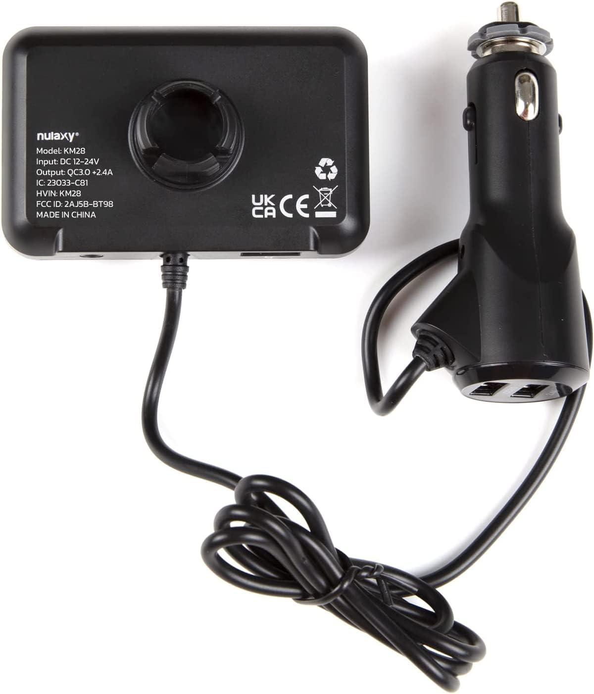 Big Color Screen & Air Vent Clip: Nulaxy KM28 car bluetooth adapter adopts a Big color screen providing you with more information such as incoming phone numbers, car battery voltage, FM frequency, and track names. In addition, the air vent installation offer you better view angle for your safety.