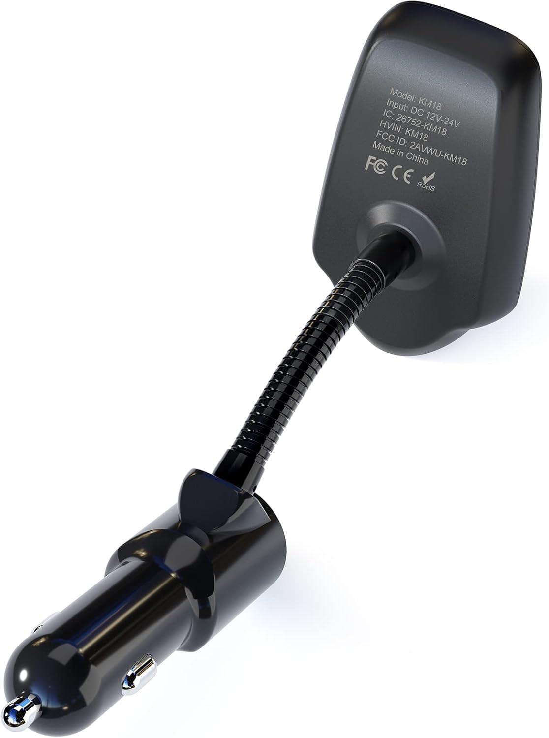 Nulaxy Car Bluetooth FM Transmitter [2024 Upgraded], 1.44″ Display Flexible Gooseneck, Handsfree Call Wireless Music Stereo Audio Player Radio Adapter Car Kit USB Phone Charger, TF SD Card AUX-KM18(Black Matte)