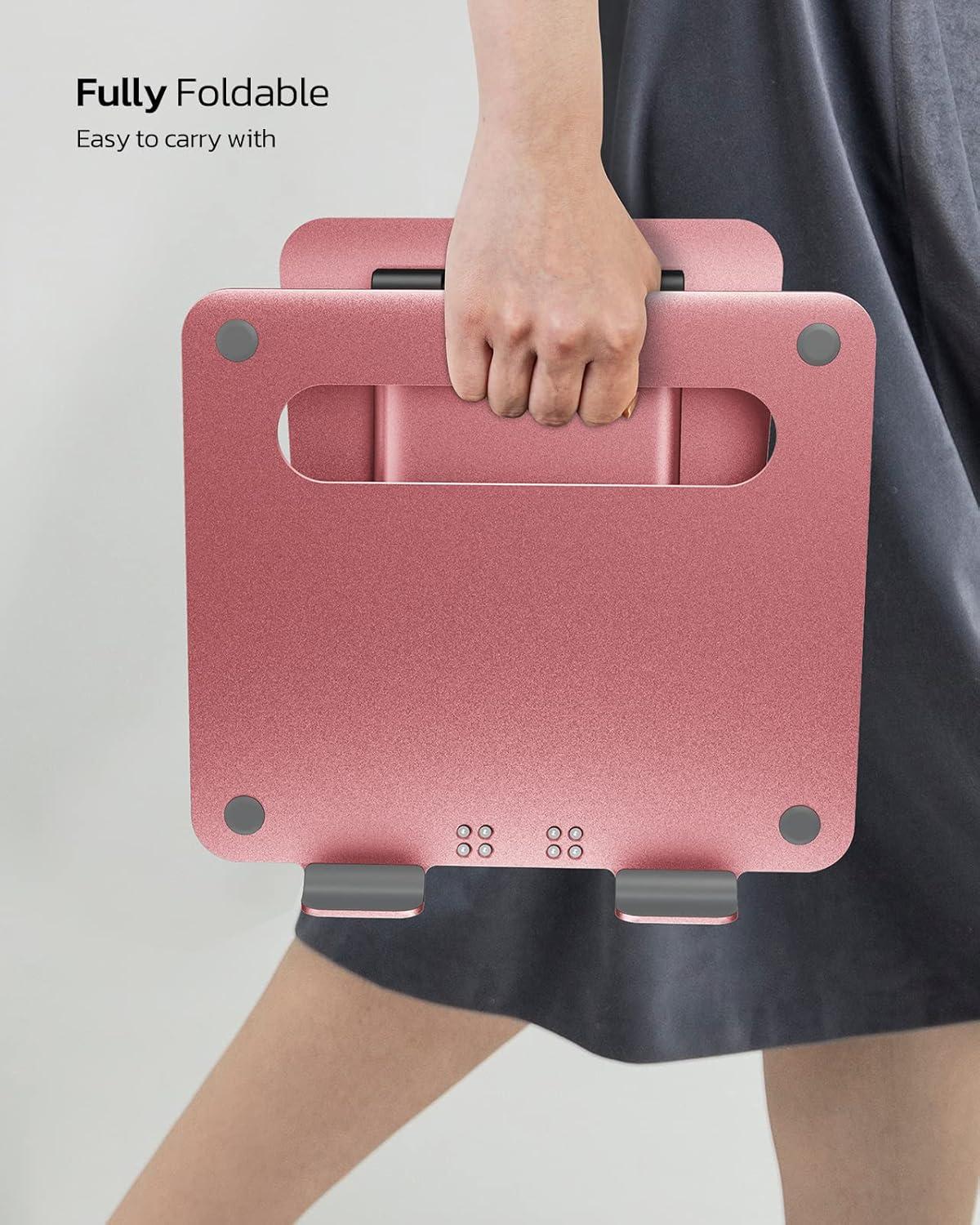 Nulaxy Height Adjustable Laptop Stand for Desk, Dual Foldable Aluminum Computer Riser, Pull Out Design Ergonomic Sit to Notebook Holder Convertor, Compatible with All 10-17″ Laptops, Tablets, Gray(D-Rose Gold)