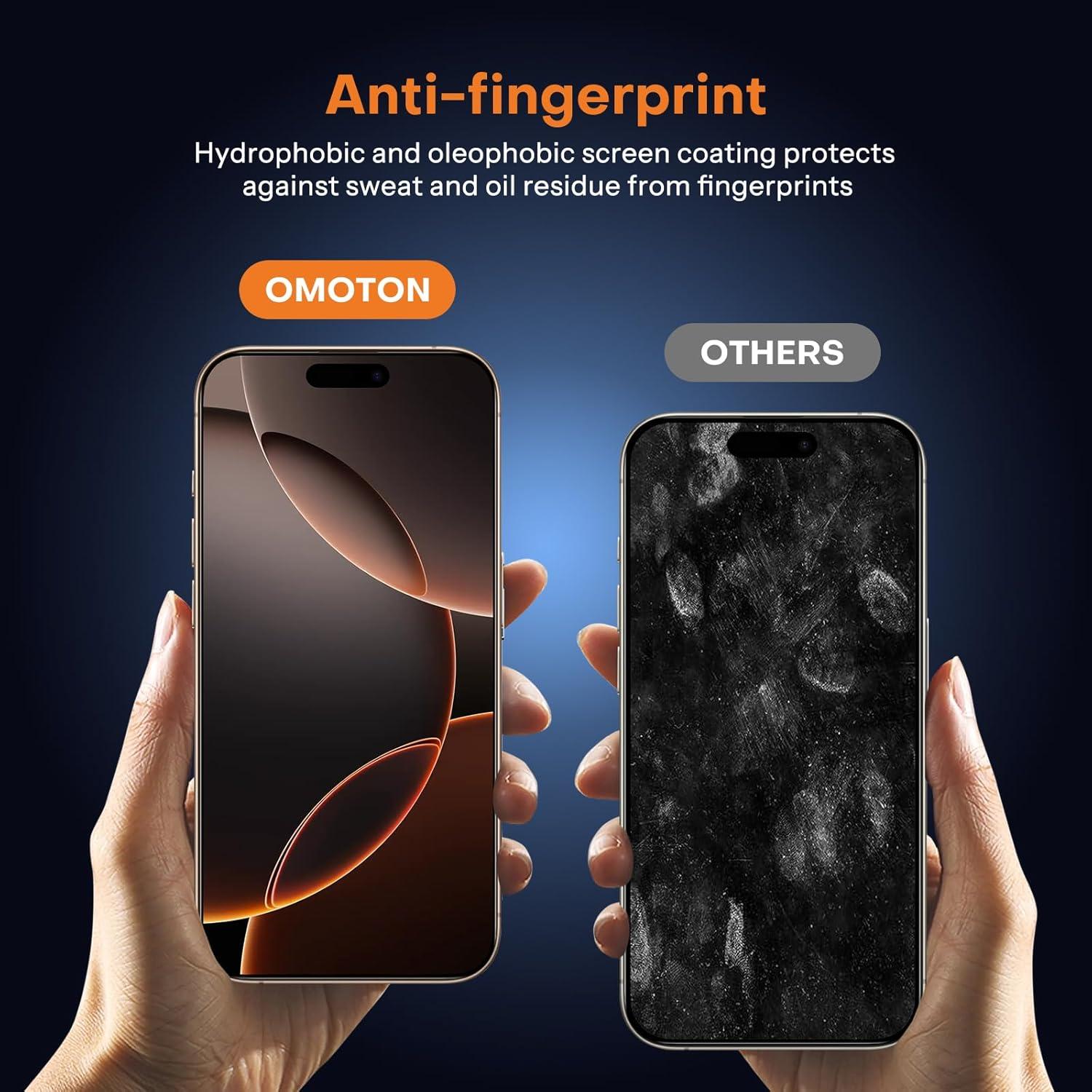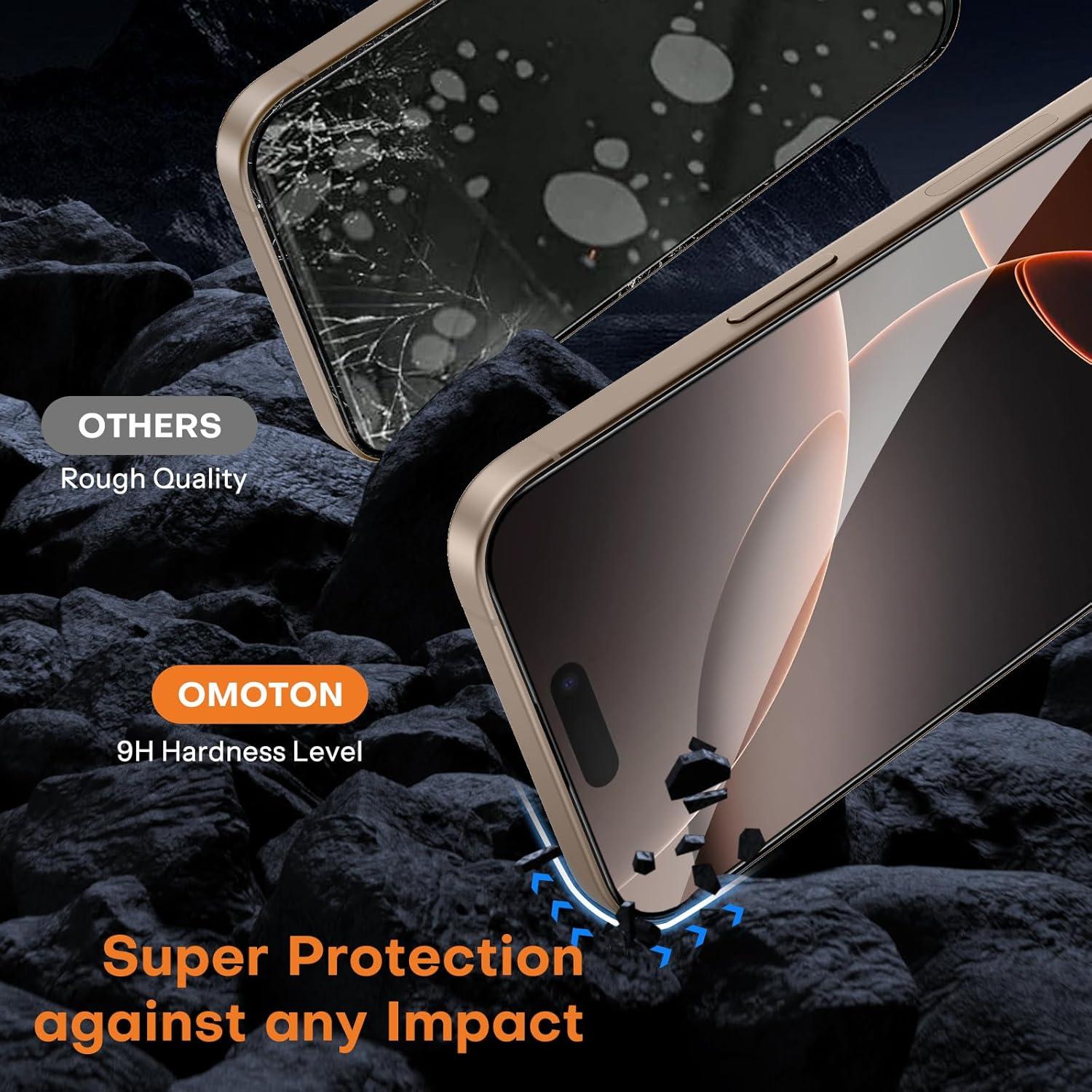 OMOTON 2+2 Pack Screen Protector and Camera Lens Protector for iPhone 16 Pro Max, Full Screen Installation, Precise Alignment, Bubble-Free, Dust-free, 9H Hardness, Easy Installation