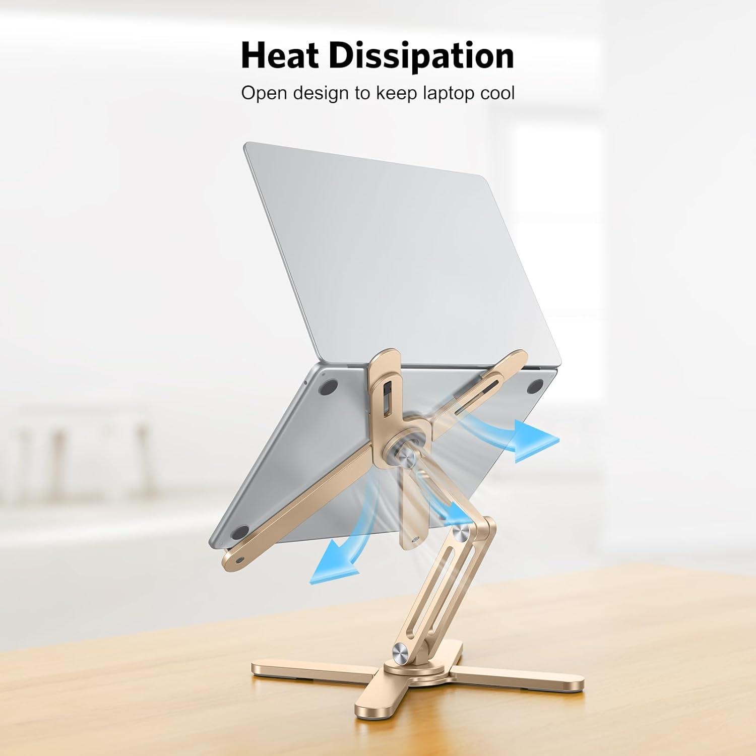 【Heat Dissipation】: The X-shape laptop riser provides good ventilation and airflow to prevent your laptop from overheating. It is made of 100% aluminium alloy, which can help dissipate heat to cool down your laptop