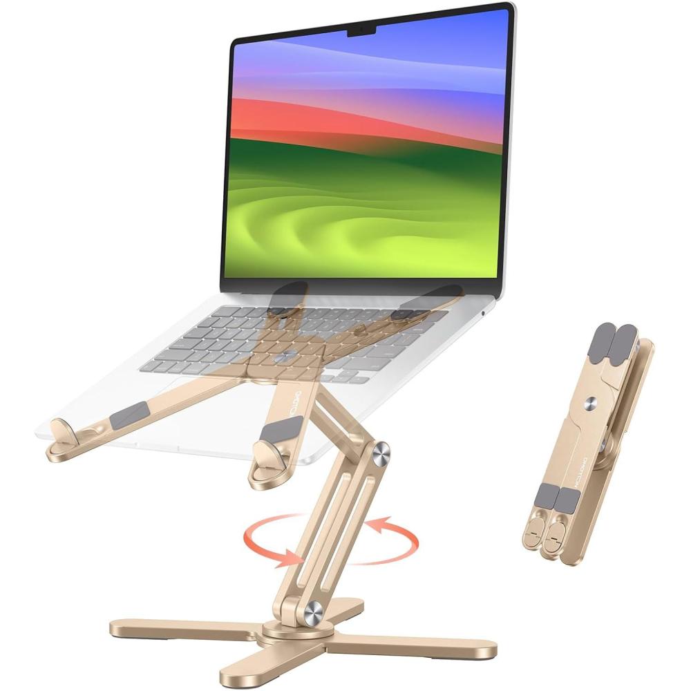 OMOTON 360° Rotating Laptop Stand Riser for Desk, Ergonomic Foldable Computer Stand Adjustable Height Angles for Collaborative Work, Easy Storage Fit Macbooks,All Laptops up to 16 inches, Silver(Gold)