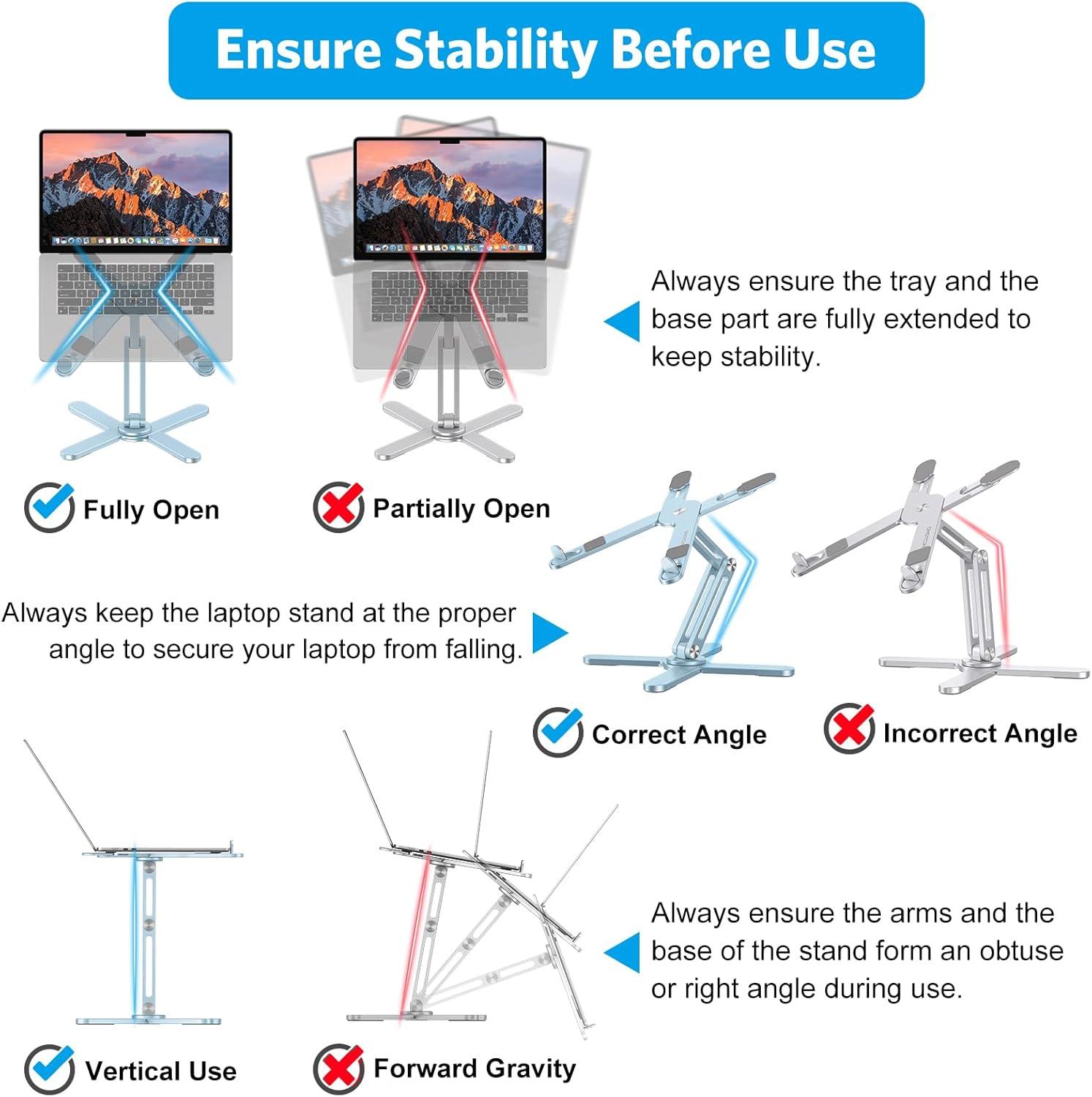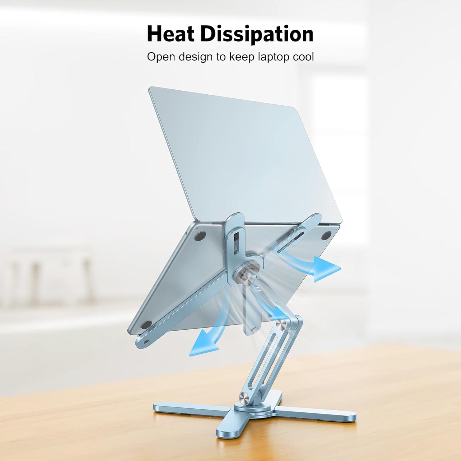 【Heat Dissipation】: The X-shape laptop riser provides good ventilation and airflow to prevent your laptop from overheating. It is made of 100% aluminium alloy, which can help dissipate heat to cool down your laptop