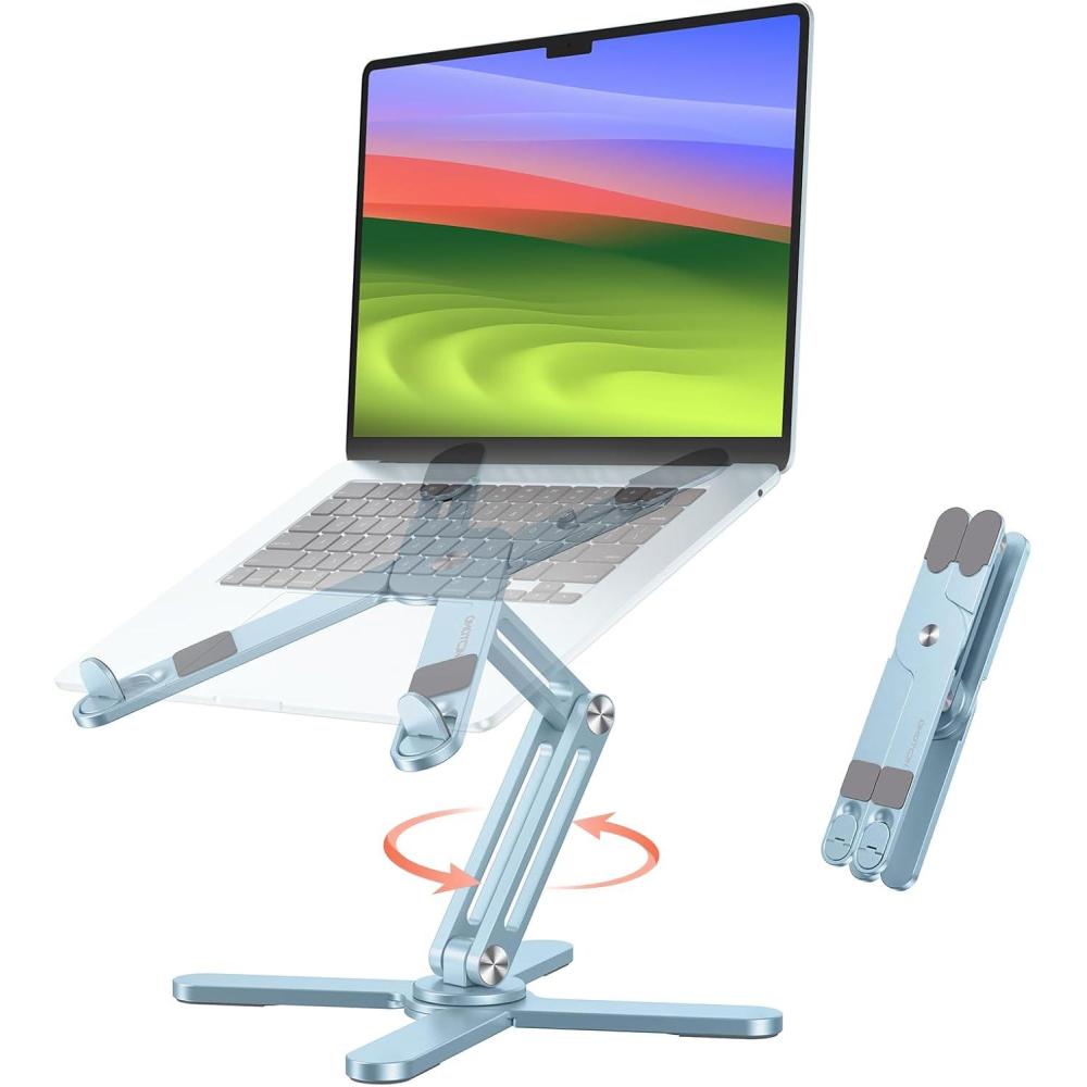 OMOTON 360° Rotating Laptop Stand Riser for Desk, Ergonomic Foldable Computer Stand Adjustable Height Angles for Collaborative Work, Easy Storage Fit Macbooks,All Laptops up to 16 inches, Silver(Sky Blue)