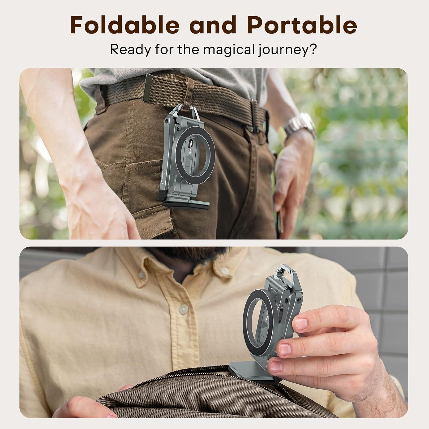 【Full Range Adjustment】: Easily switch between landscape and portrait modes without interrupting your content. Magnetic tripod with 360°Rotating+3-axis adjustment up to 990° adjustability, for iphone tripod stand you can find the perfect angle for video, messaging, or capturing stunning shots. Explore more perspectives with seamless, stable adjustments