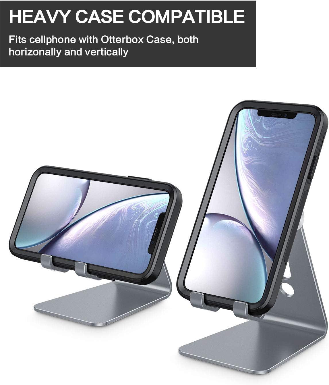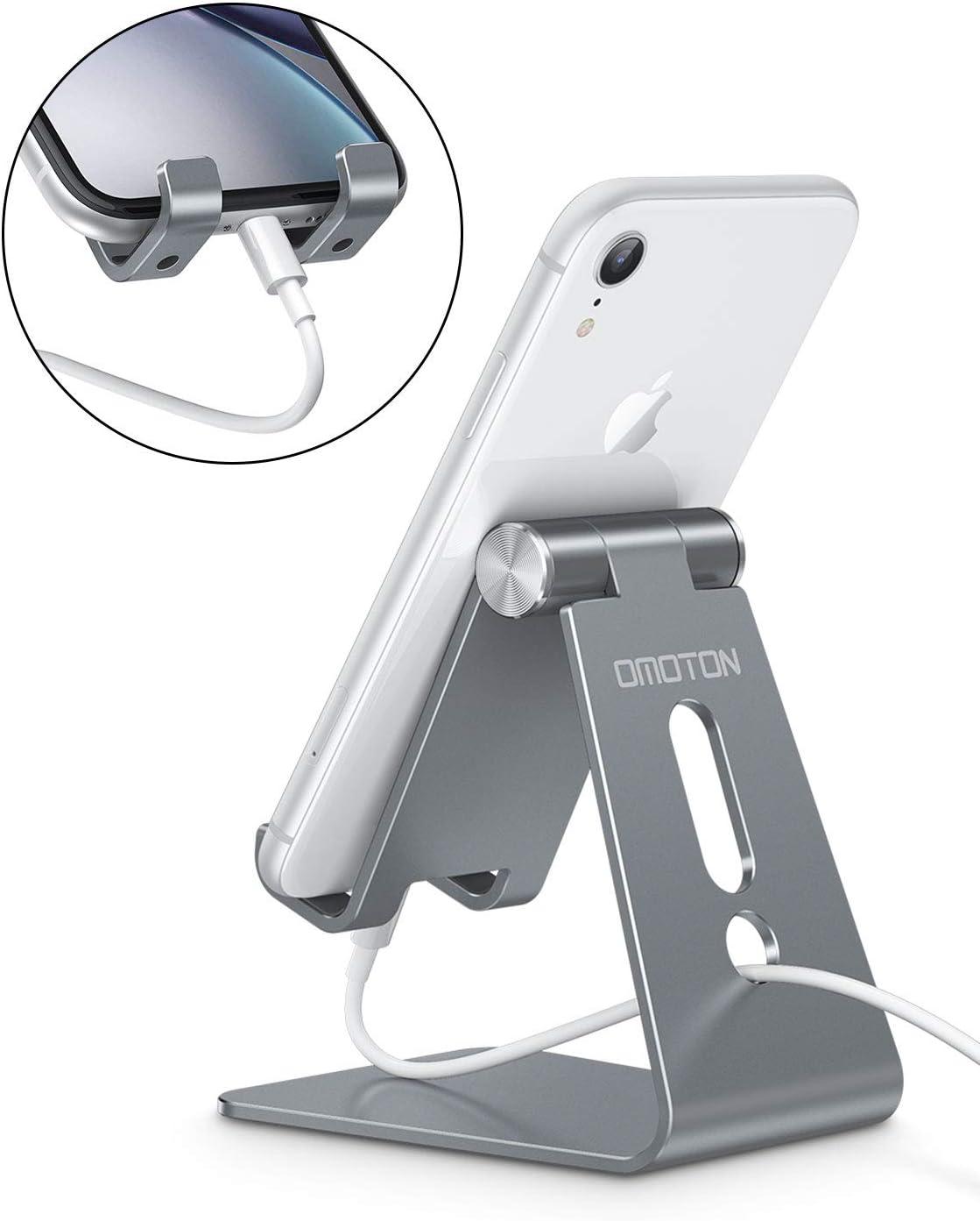 OMOTON Adjustable Cell Phone Stand, C2 Aluminum Desktop Phone Holder Dock Compatible with iPhone 15 14 13 Xs XR 8 Plus 7 6, Samsung Galaxy, Google Pixel, Android Phones, Black(Grey)
