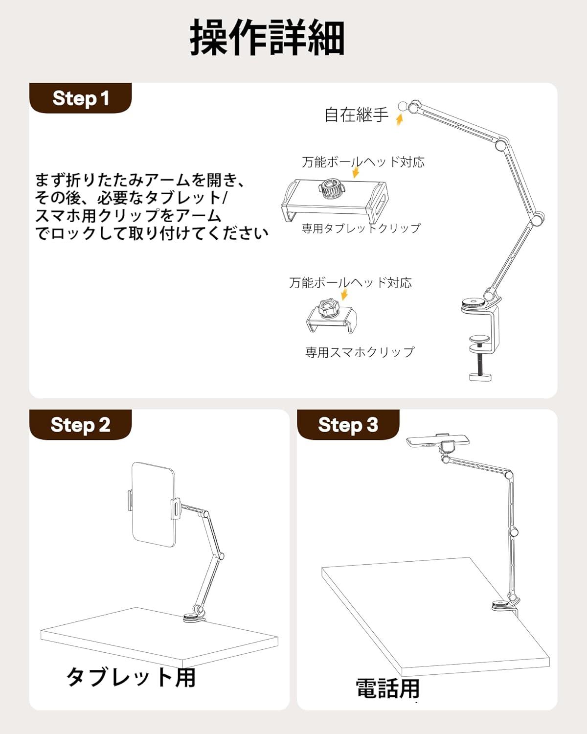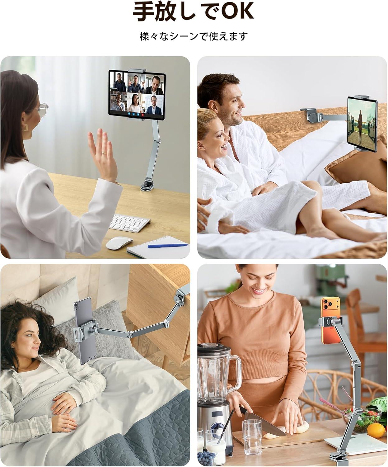 Universal Fit & Tool-Free Setup: This tablet holder fits all phone and tablet up to 12 inches like iPad/iPad Air/iPad Pro/iPad Mini/Kindle/Fire HD/Samsung Galaxy Tab/Android Tablet/iPhone Pro Max/iPhone Plus/Google Pixel. Just unfold it and set up the clip you need