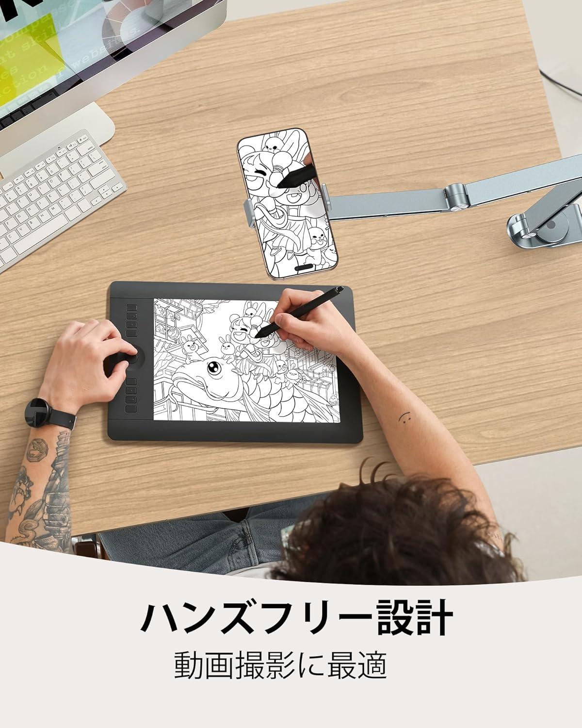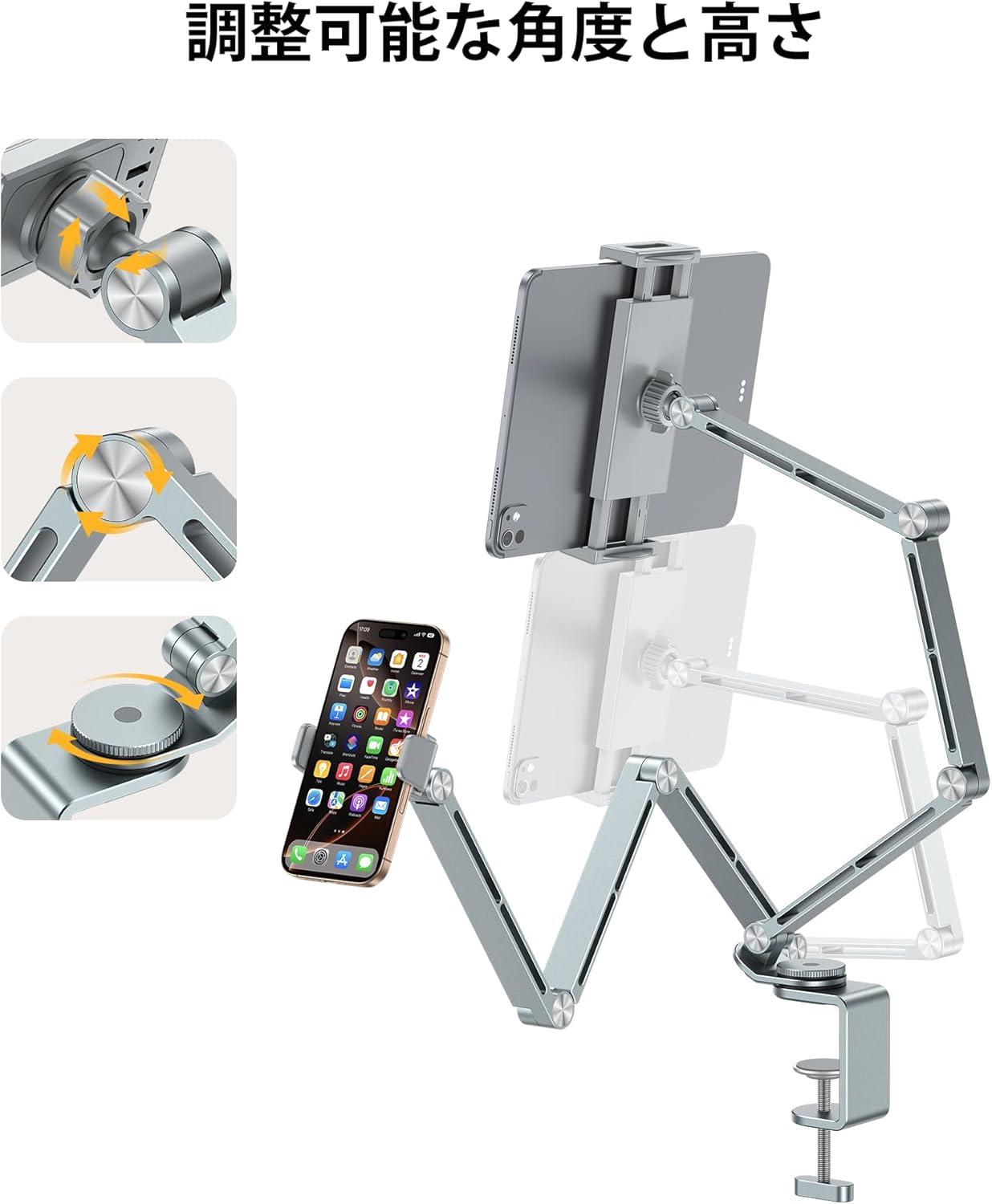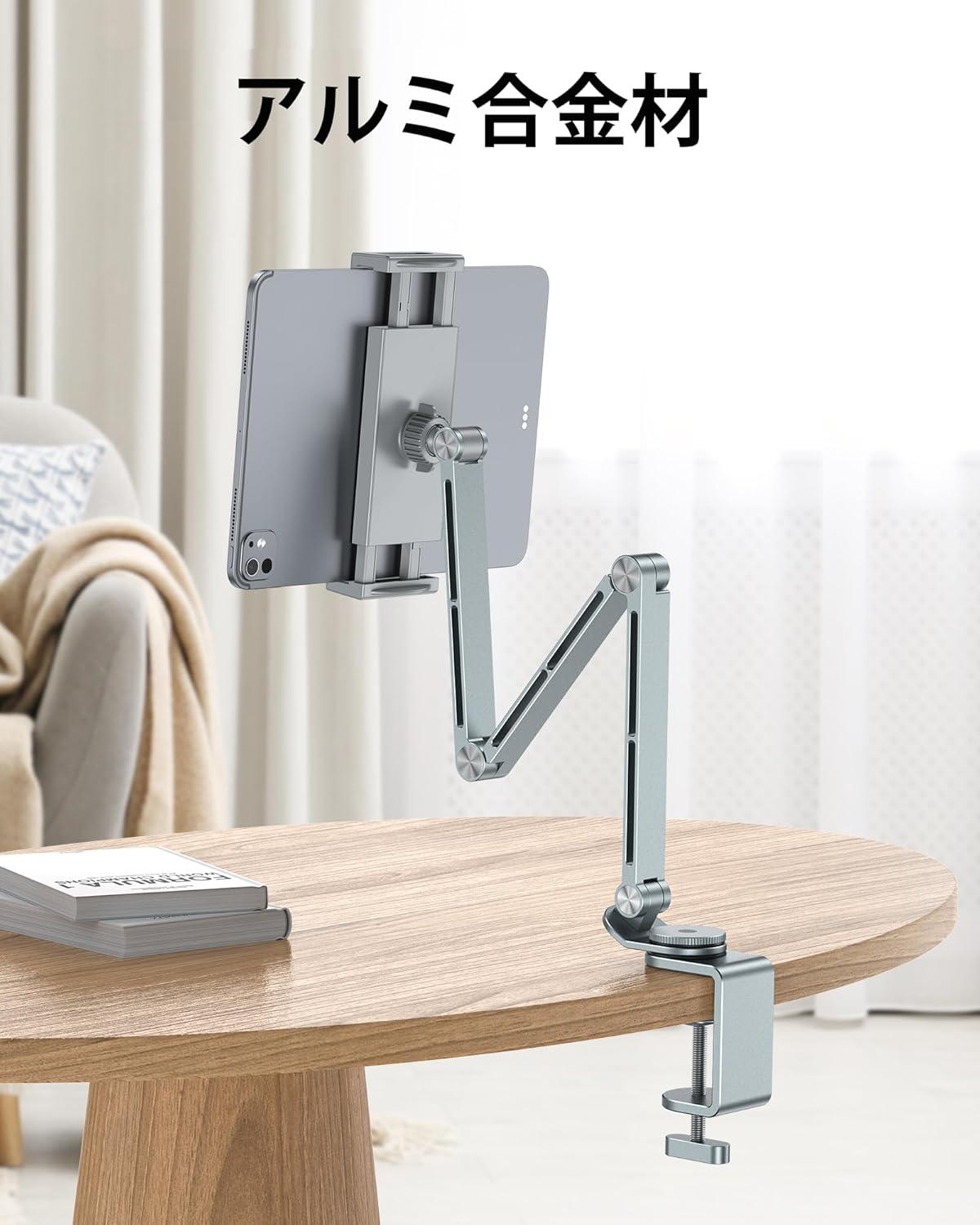 Premium All-Aluminum Frame (Except Clips): This ipad stand for desk is crafted from sturdy aluminum for maximum stability—BUT the phone & tablet clips are durable plastic for secure grip without scratching your devices