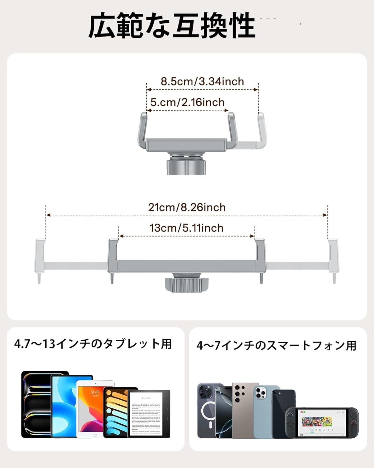 Include 2 Grips (Phone & Tablet): This gooseneck ipad holder comes with both a phone clip and a tablet clip, so you can easily watch videos, follow recipes, make video calls, or read hands-free. The sturdy grips keep your device secure – no more awkward balancing acts