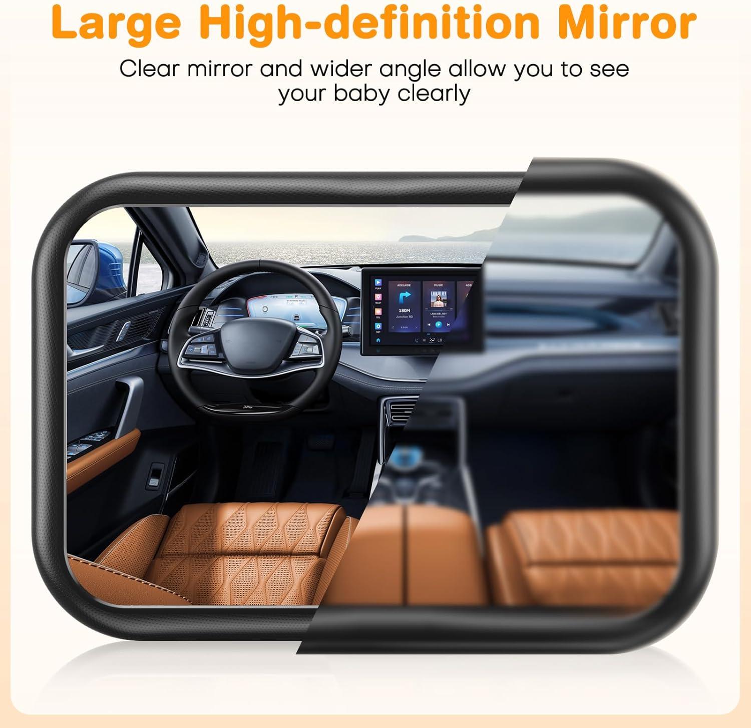 【Wider Mirror Provides Ideal Coverage】175°ultra-wide baby car mirror offers wider visual range, allowing to see every corner of your baby's rear-facing seat without taking eyes off the road.