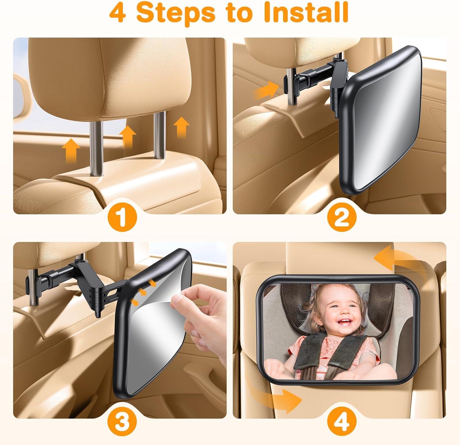 【Shatterproof Coating for Effective Protection】: Baby car mirror is safe for baby, made of unbreakable high-definition convex mirror material, so don’t need to worry about the broken and scratches.
