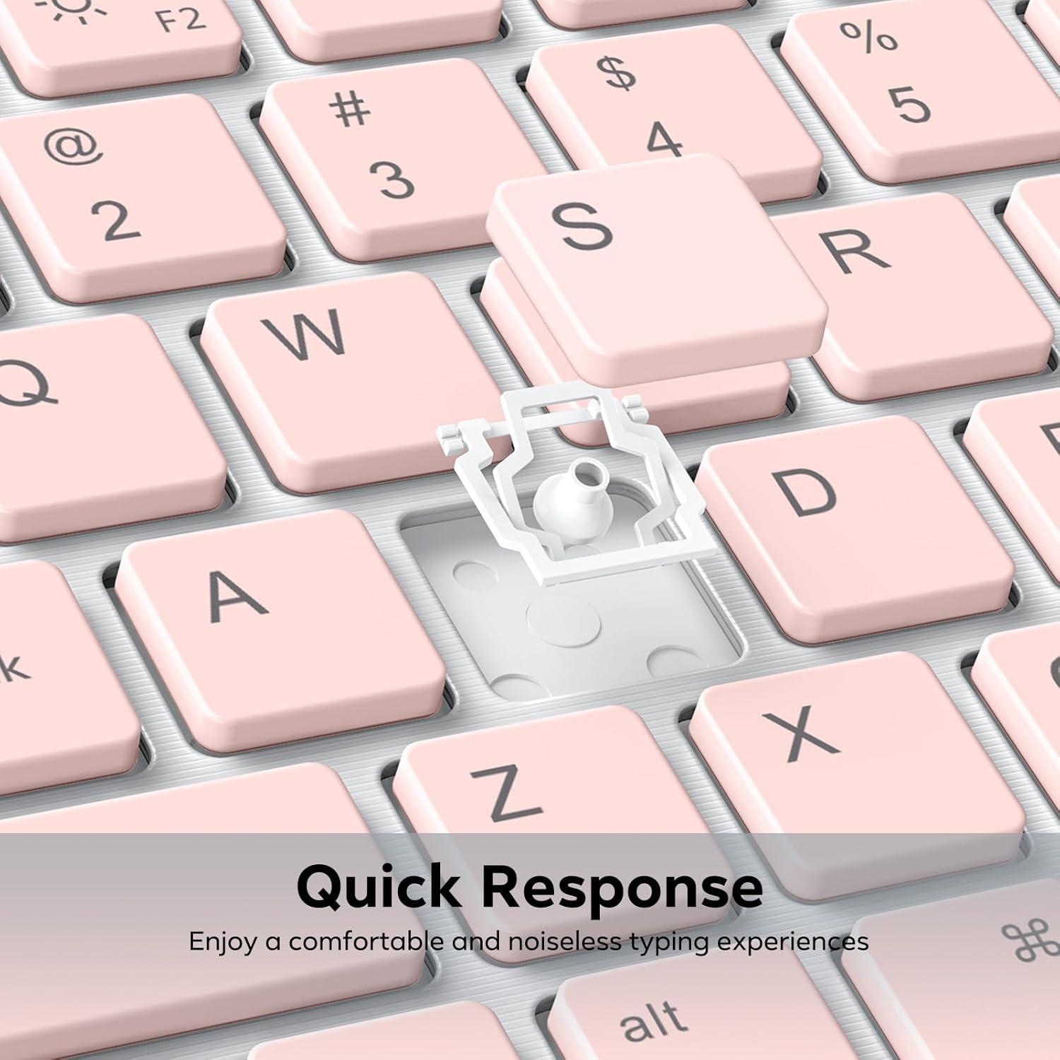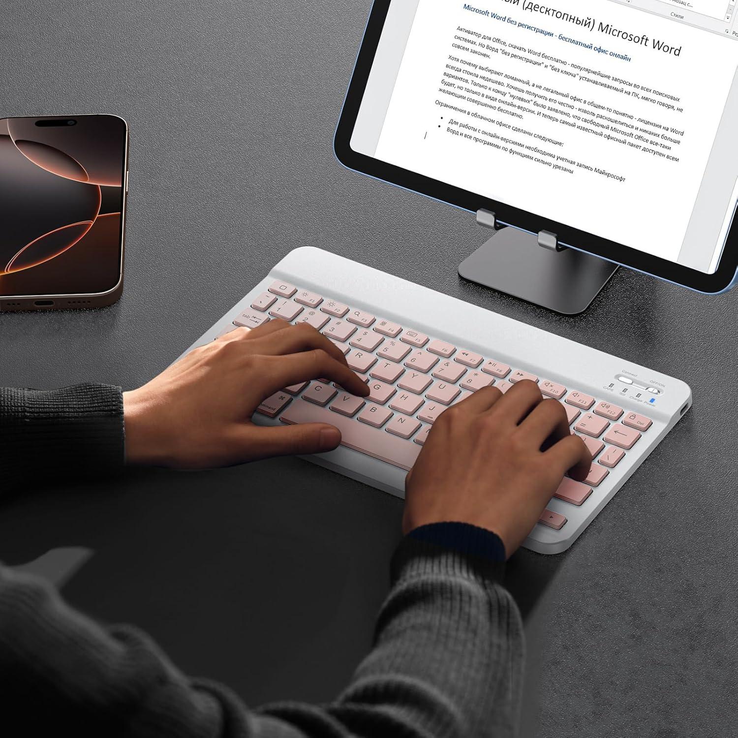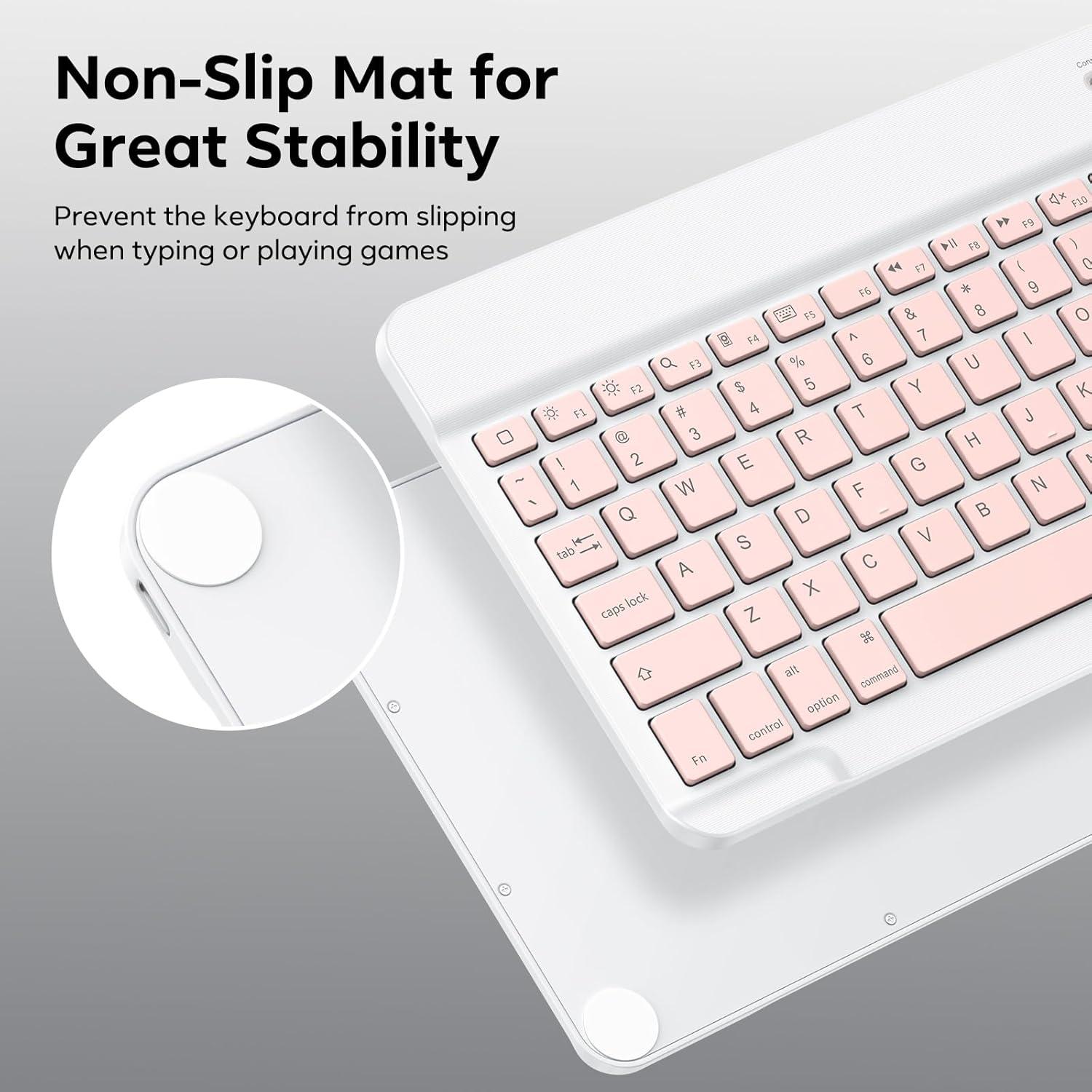 OMOTON Bluetooth Keyboard, Backlight Wireless Rechargeable Keyboard for iPad, iPad Pro, iPad mini, iPad Air with Illuminated LED (White)(White Pink)