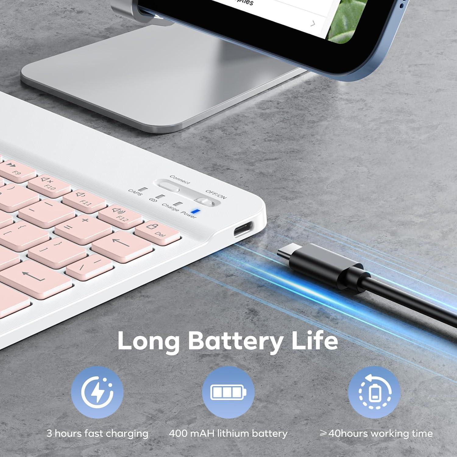 LONG BATTERY LIFE: With a built-in 400mAh lithium battery, this wireless keyboard for iPad lasts for days once fully charged.