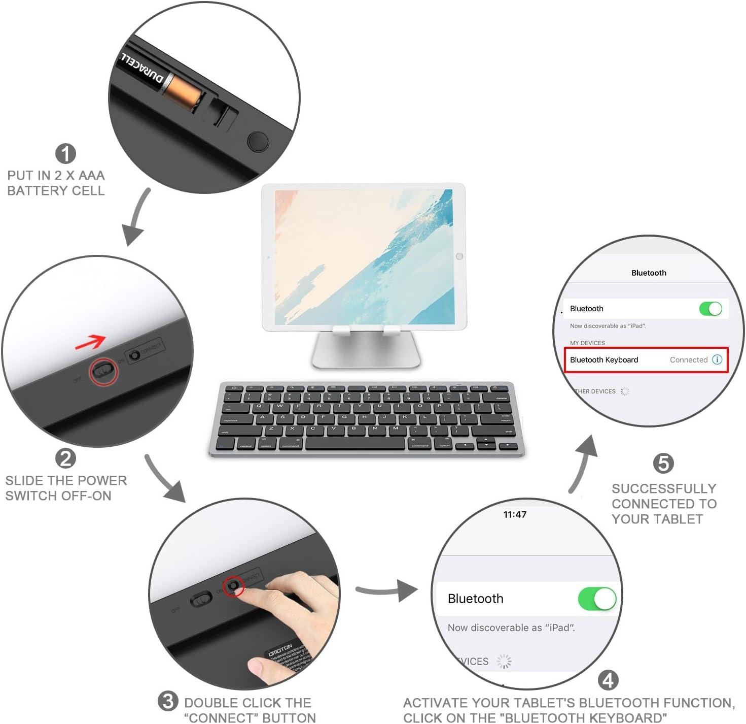 Long Battery Life【2 x AAA Battery Required, NOT Included】, The keyboard uses an energy-saving design and automatic sleep mode to allow up to 6 months between battery changes