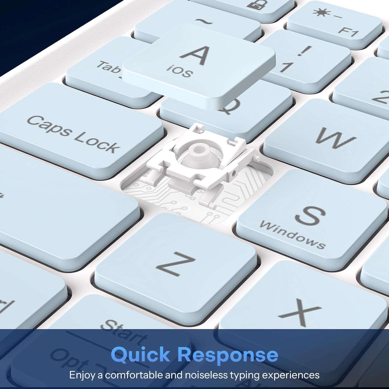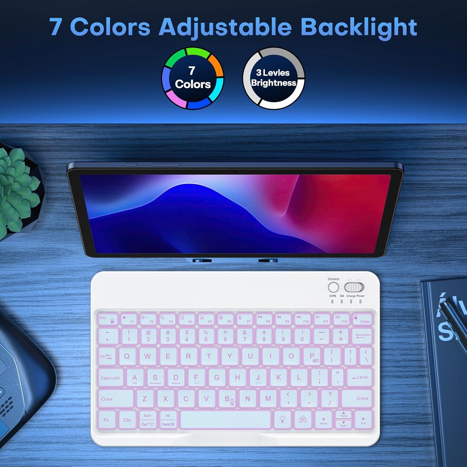 OMOTON Bluetooth Keyboard for Tablet/Android/Windows/iOS, with 7 Colors Backlight Rechargeable Wireless Keyboard Compatible with Galaxy Tab A9+/A9+ Plus/S9/S9 Plus/S9 FE, White(Blue)