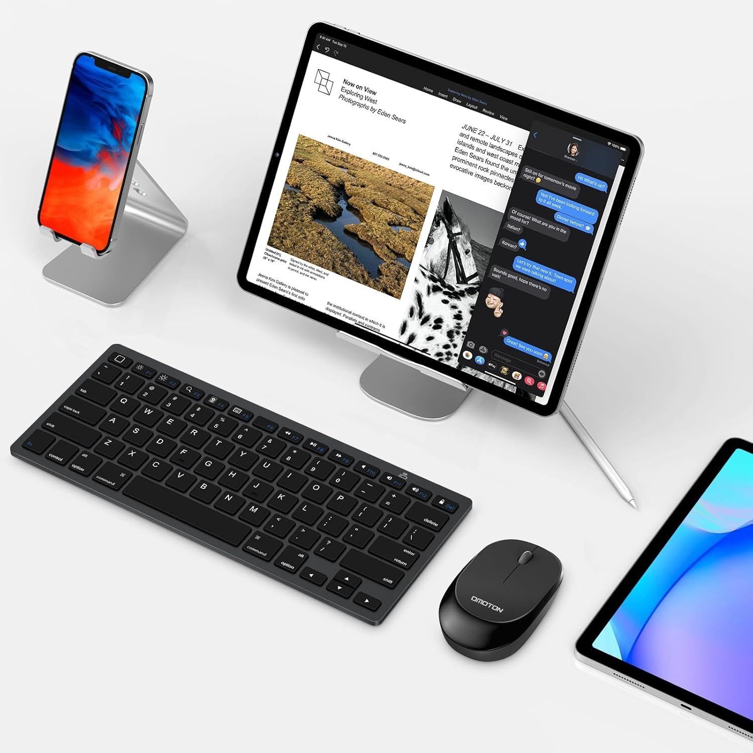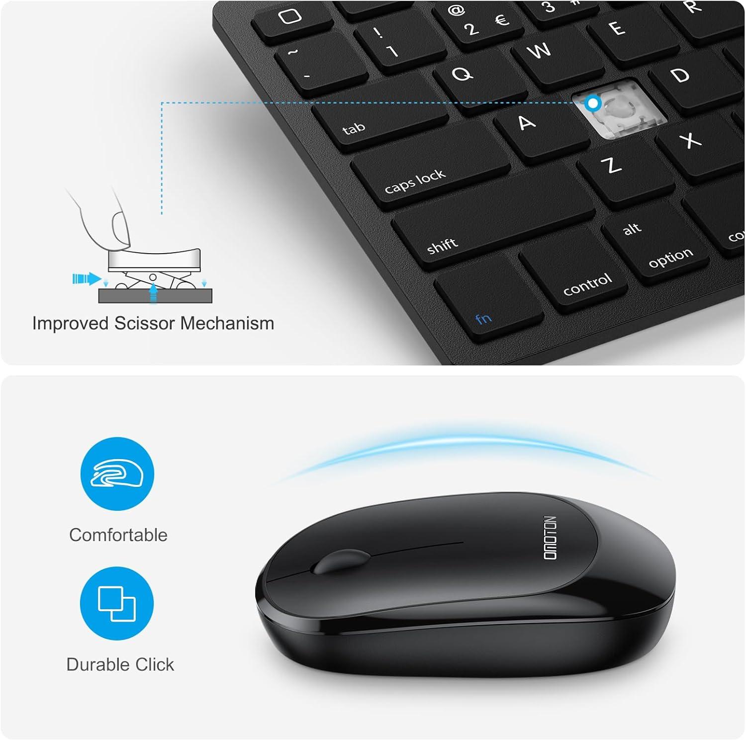 OMOTON Bluetooth Keyboard & Mouse Combo, Wireless Set for iPad Pro 13/11 (2024)/12.9, 10th/9th/8th/7th Gen, Air 6/5/4 and Other Bluetooth Enabled Devices (Black)(Black)