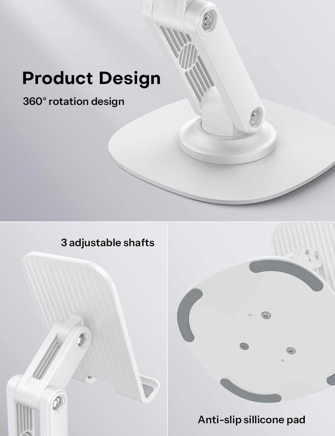 OMOTON Cell Phone Stand for Desk, 2 Pack Adjustable Foldable Phone Holder, 360 Swivel Mobile Stand Fit for iPhone 17 16 15 14 13 Pro Max and All Smart Phones, Black & White(White & White)