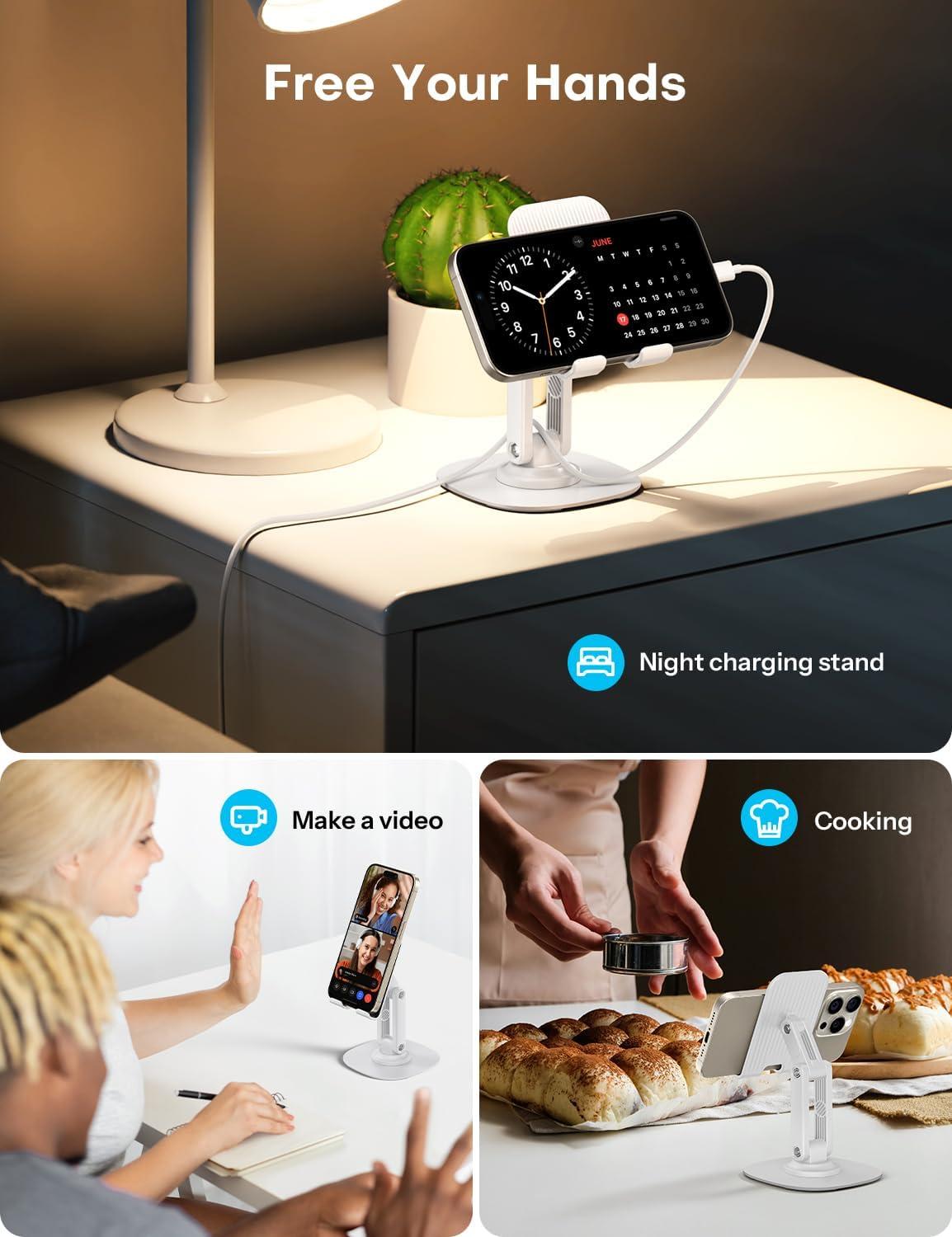 Wide Compatibility: This phone stand is compatible with all 4-6.7 inches smartphones in phone cases, like iPhone 17, iPhone 17 pro, iPhone 17 pro max, iPhone 16, iPhone 16 Plus, iPhone 16 pro, iPhone 16 pro max, iPhone 15, iPhone 15 pro, iPhone 15 pro max, iPhone 14, iPhone 14 pro, iPhone 14 pro max, 13 Mini, iPhone 13, iPhone 13 Pro, iPhone 13 Pro Max, 12, 11 Pro XS Max XR X 8 7 6 6S Plus, Galaxy S21 Ultra, S20, S10, S9, S9 Plus etc.