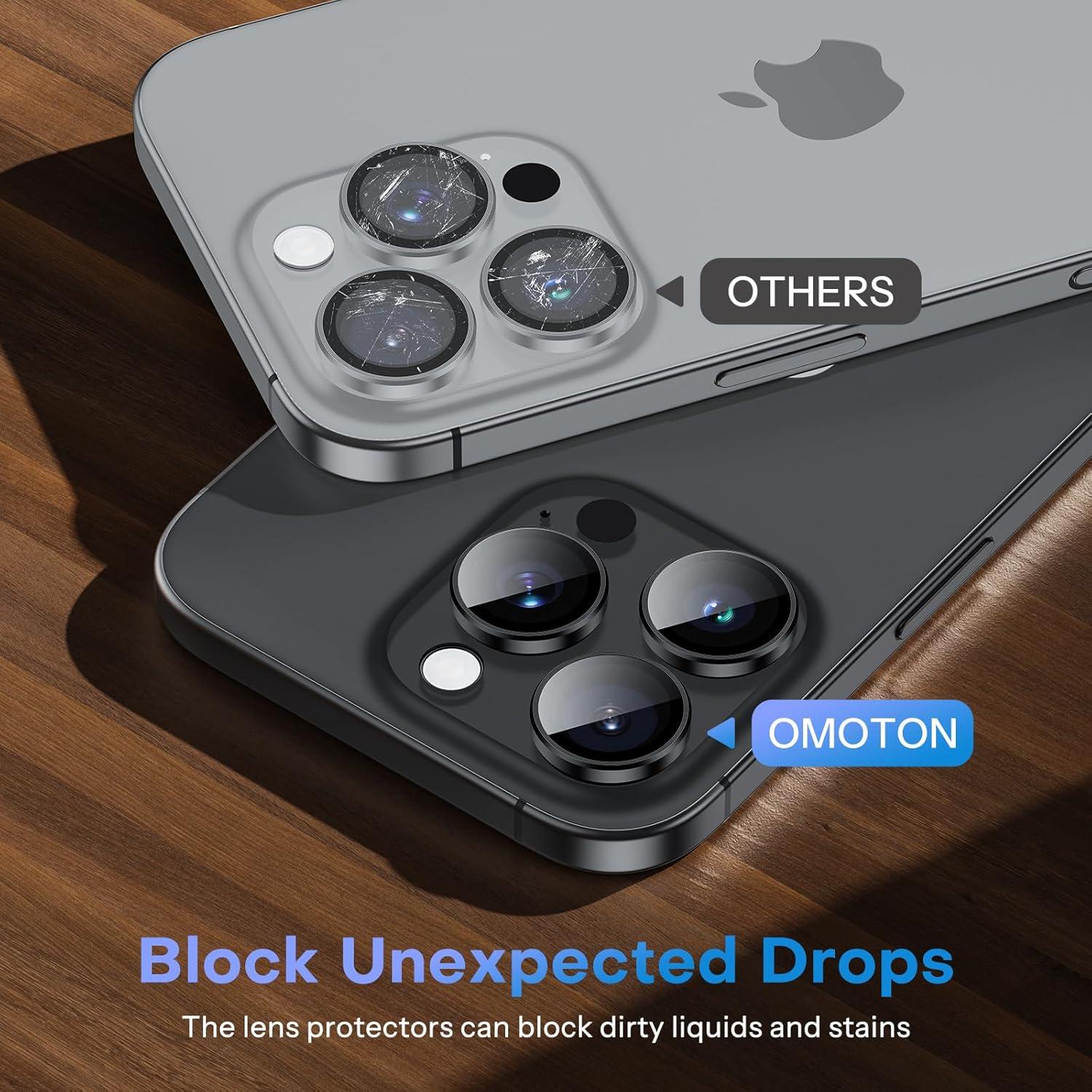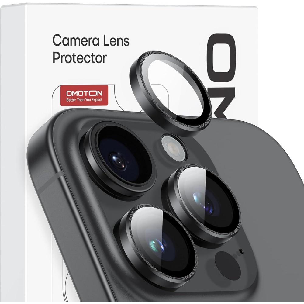 OMOTON Clear Camera Lens Protector for iPhone 16 Pro Max/16 Pro, Individual Camera Lens Protector, High-definition Photos, Ultra-thin Tempered Glass Lens Protector, 2 Set Transparent Ring(Black)