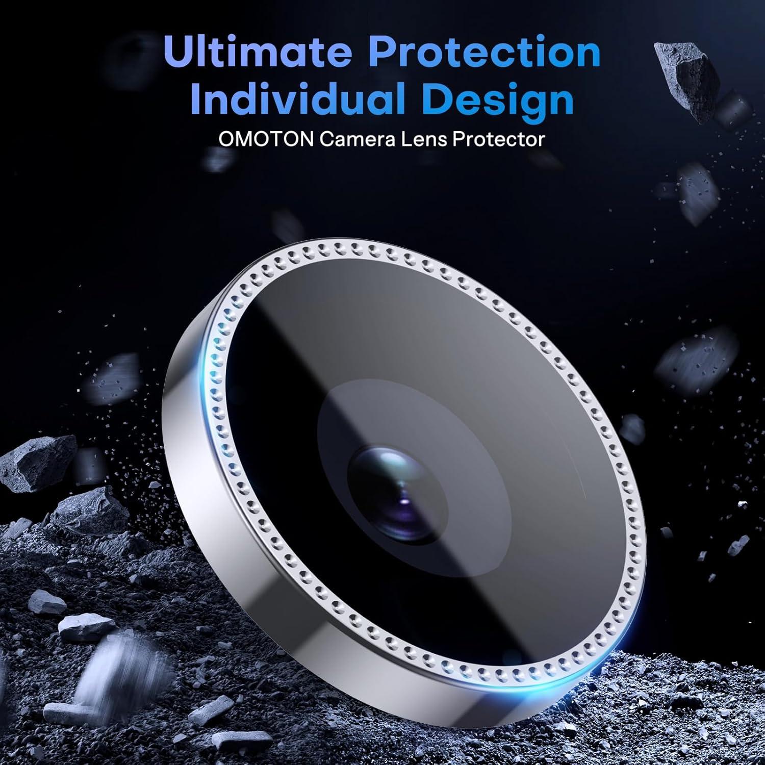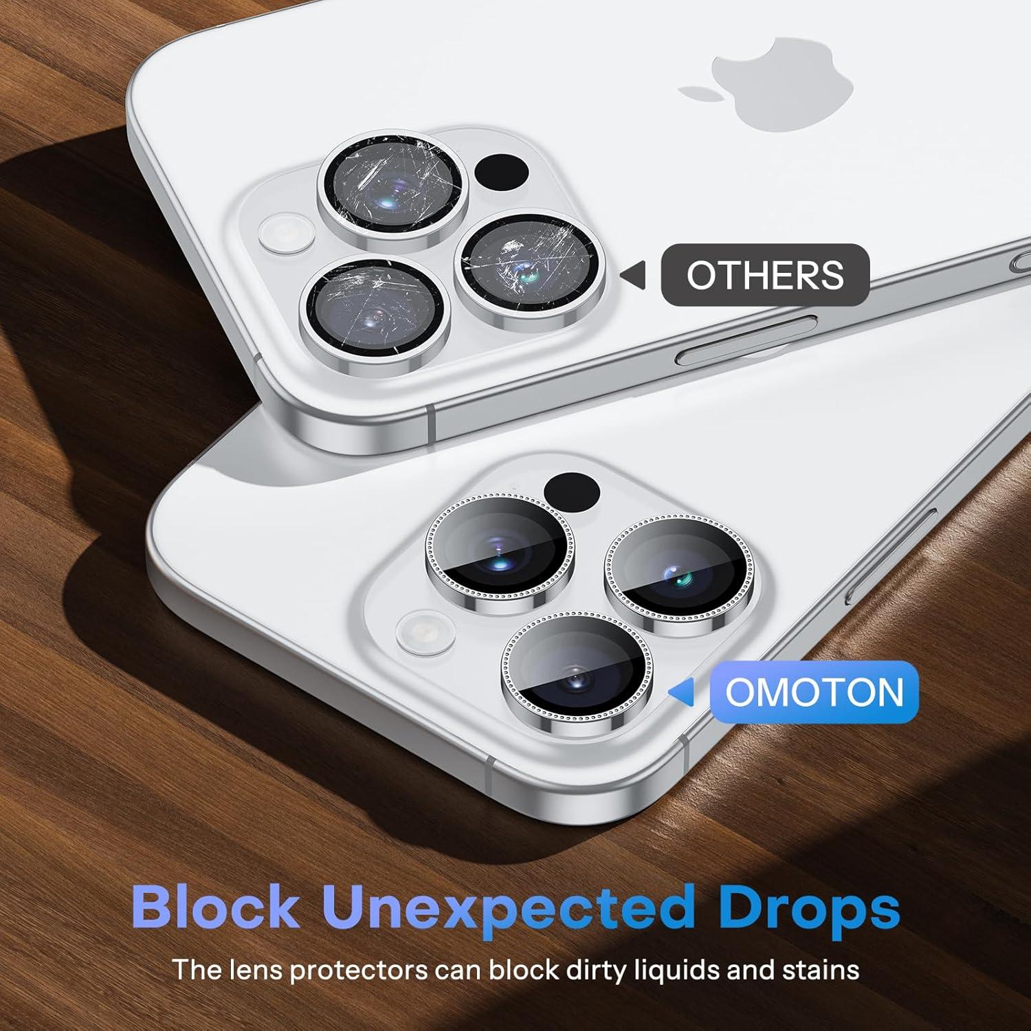 OMOTON Clear Camera Lens Protector for iPhone 16 Pro Max/16 Pro, Individual Camera Lens Protector, High-definition Photos, Ultra-thin Tempered Glass Lens Protector, 2 Set Transparent Ring(Silver Glitter)