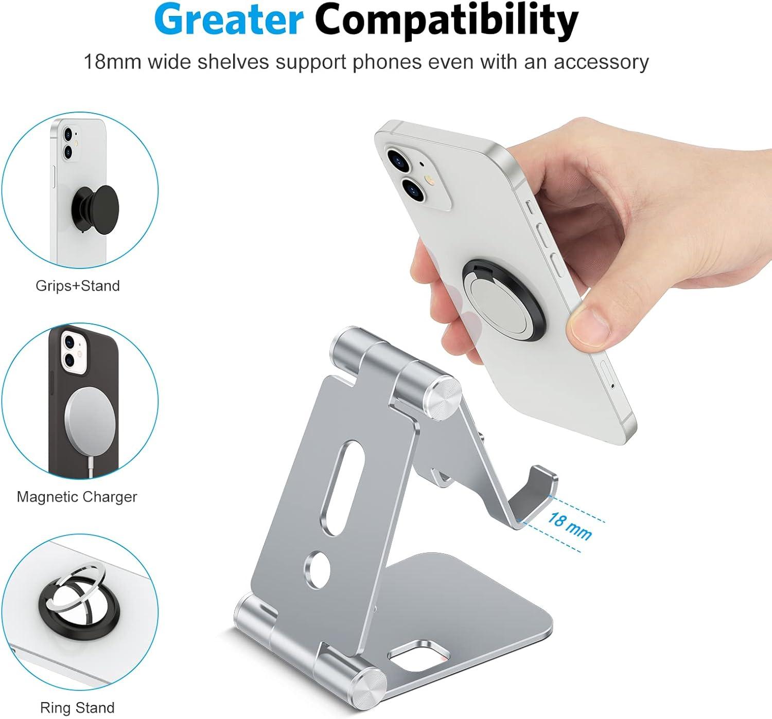 UNIVERSAL COMPATIBILITY: The universal cell phone stand is compatible with all 4-12.9 inch smart phones and tablets, such as compatible with iPhone 16/15/14/13 Pro Max Mini/SE/ Xs/ XR/ X, Samsung Galaxy Note 10 Plus/ S20/ S10e/ S9 Plus/ S8, LG, iPad, Samsung Tab, Google Nexus ,etc.