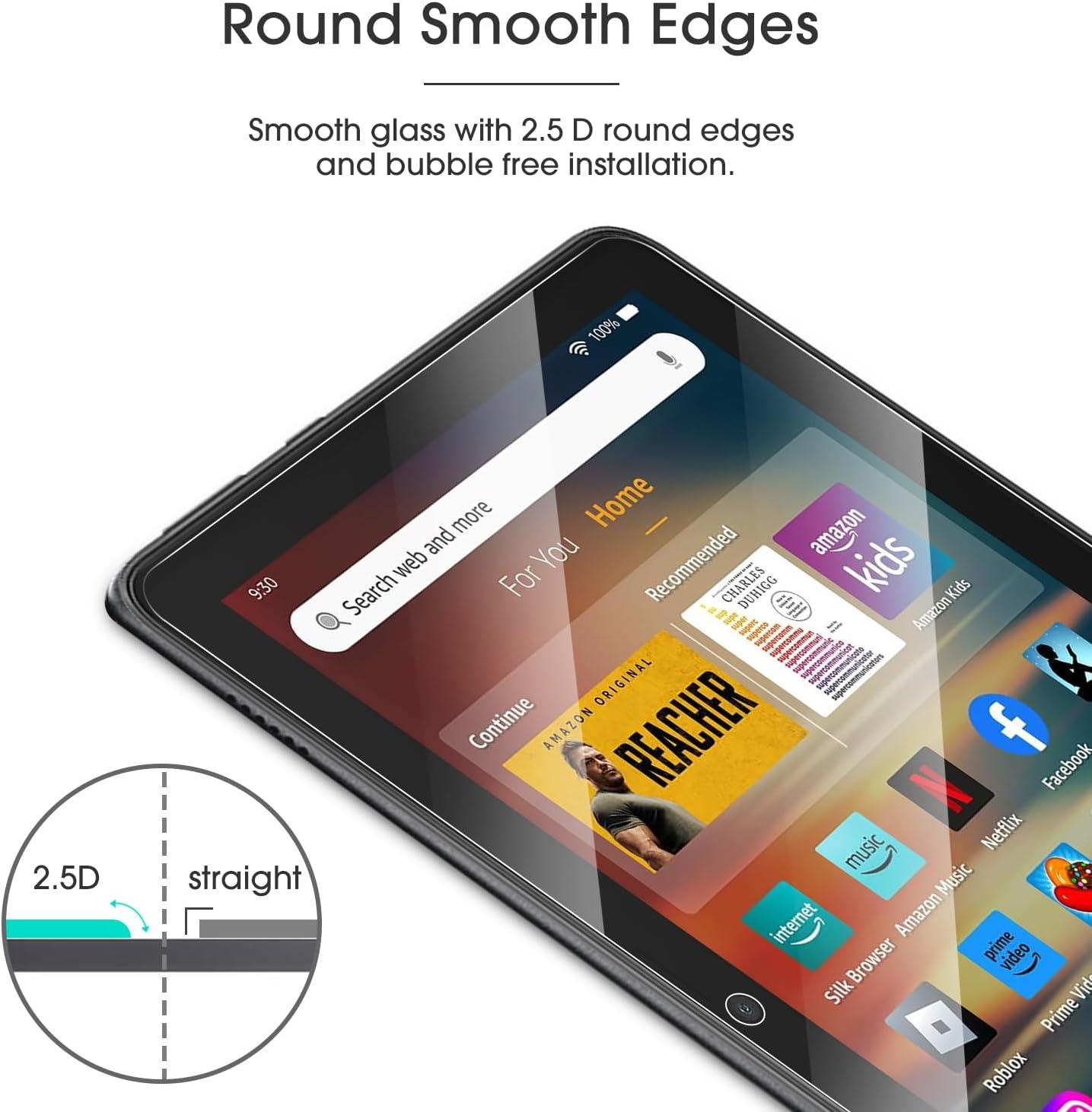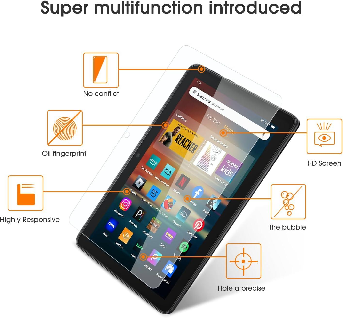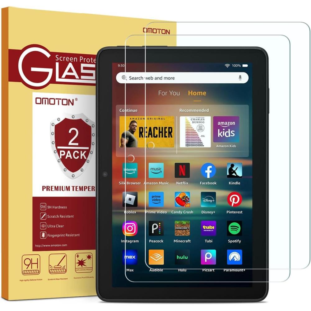 OMOTON Screen Protector for New Amazon Kindle Fire HD 8/8 Plus/Kids/Kids Pro Tablet(2024/2022/2020, 12th/10th Generation, 8 inch), Tempered Glass/9H Hardness/Case Friendly, 2 Pack