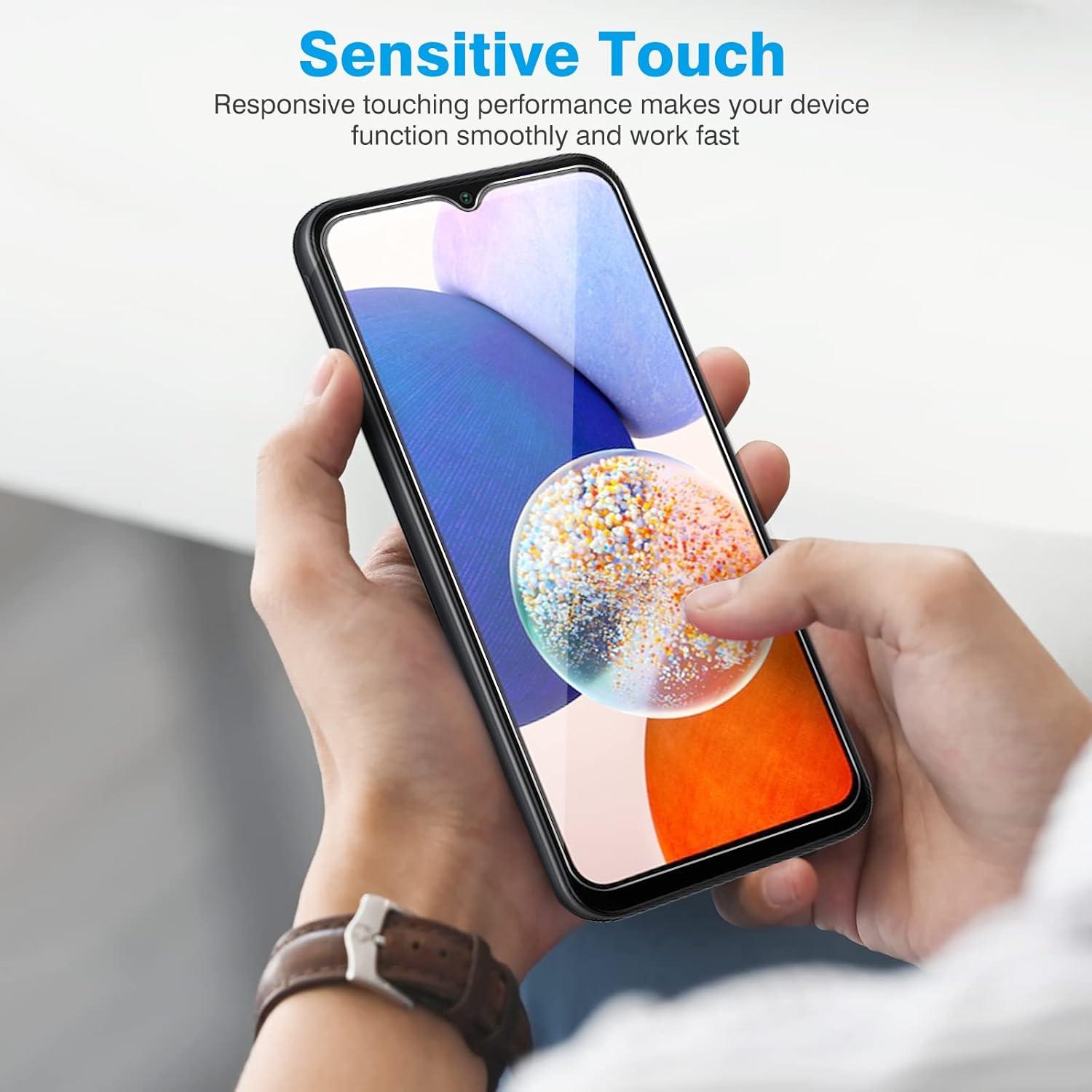 Scratch Resistant: This Galaxy A14 5G screen protector and camera lens protector are made up of industry-grade 9H hardness tempered glass, which can effectively protect the screen and camera from accidental scuffs and scratches by knife, keys and other sharp objects