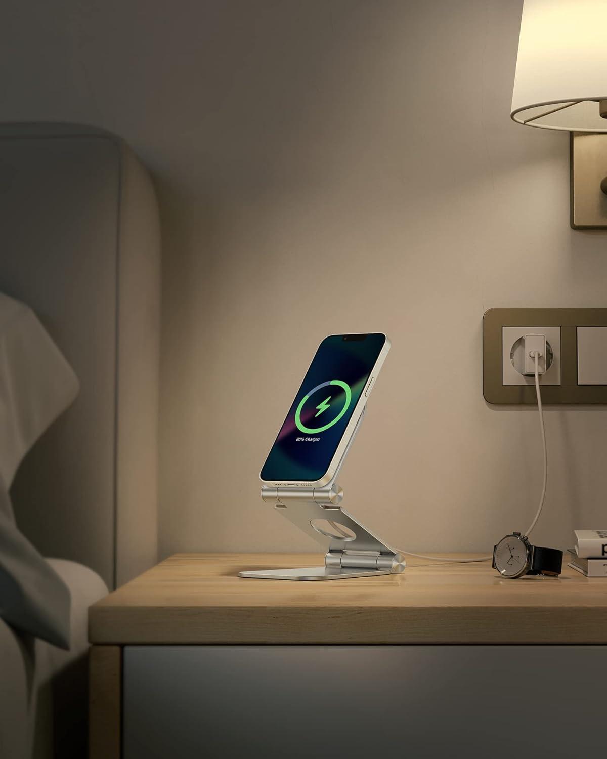 ADJUSTABLE VIEWING ANGLE: Featuring dual shafts, this stand for MagSafe charger easily adjusts up to 270 degrees to satisfy all your viewing needs. It keeps your hands free when you watch videos, play games and have video calls