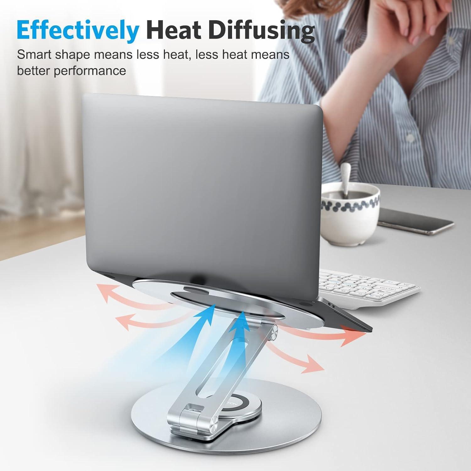 ROTATABLE & ERGONOMIC: Featuring a 360° rotatable axis connecting with the base, this laptop stand allows you to swivel your laptop to any angle. It elevates your laptop to your eye level to fix your posture and reduce your neck and back stiffness.