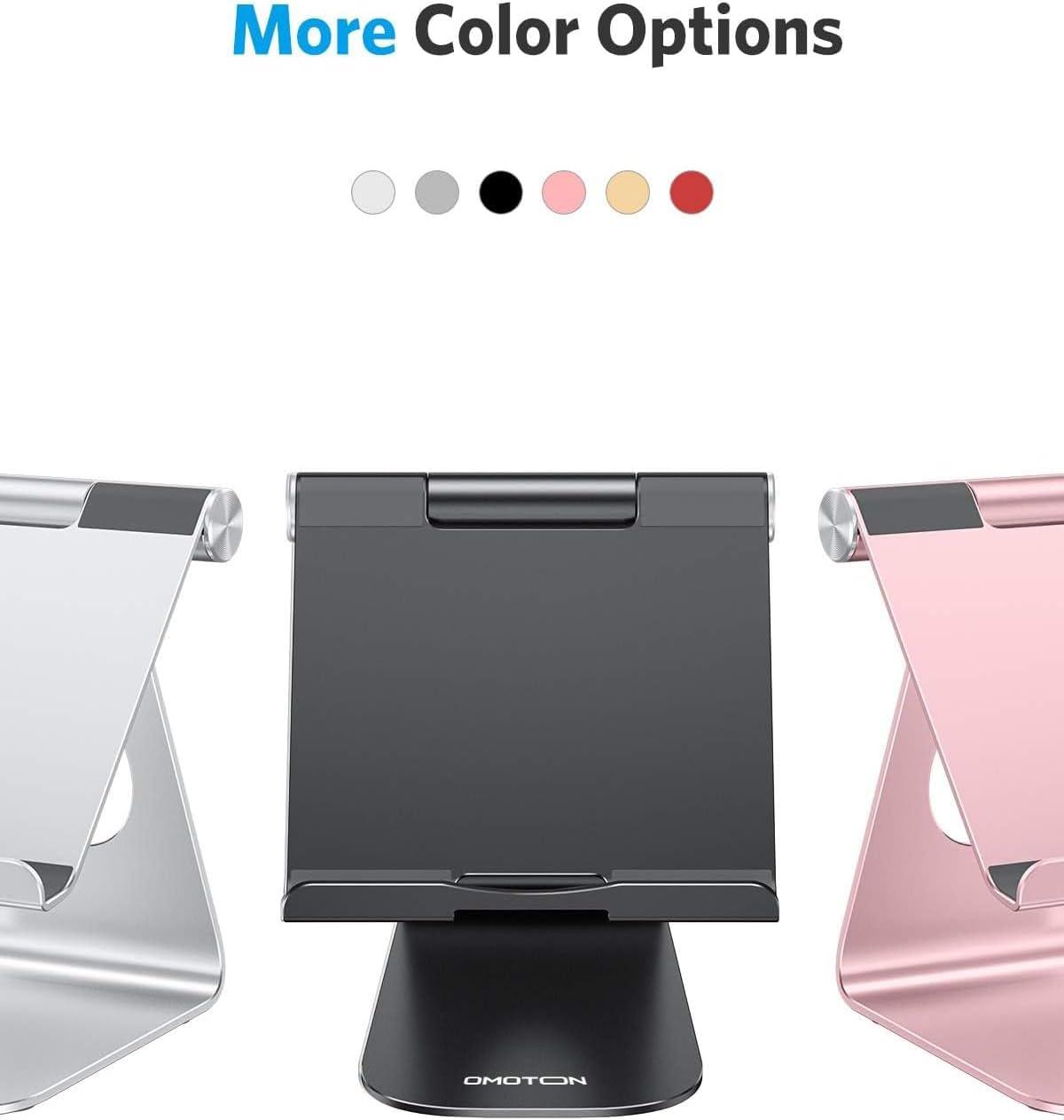 OMOTON Tablet Stand Holder Adjustable, T1 Desktop Aluminum Tablet Dock Cradle Compatible with iPad Air/Mini, iPad 10.2/9.7, iPad Pro 11/12.9/13, Samsung Tab and More Up to 13 inch, Silver(Black)