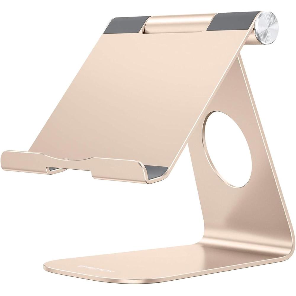 OMOTON Tablet Stand Holder Adjustable, T1 Desktop Aluminum Tablet Dock Cradle Compatible with iPad Air/Mini, iPad 10.2/9.7, iPad Pro 11/12.9/13, Samsung Tab and More Up to 13 inch, Silver(Gold)