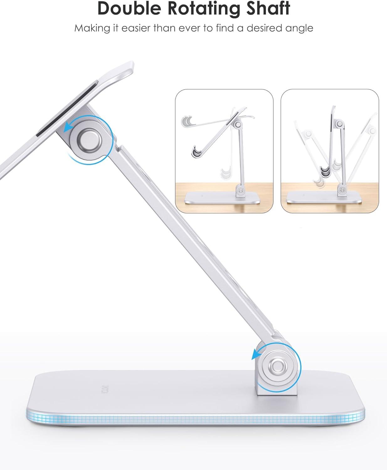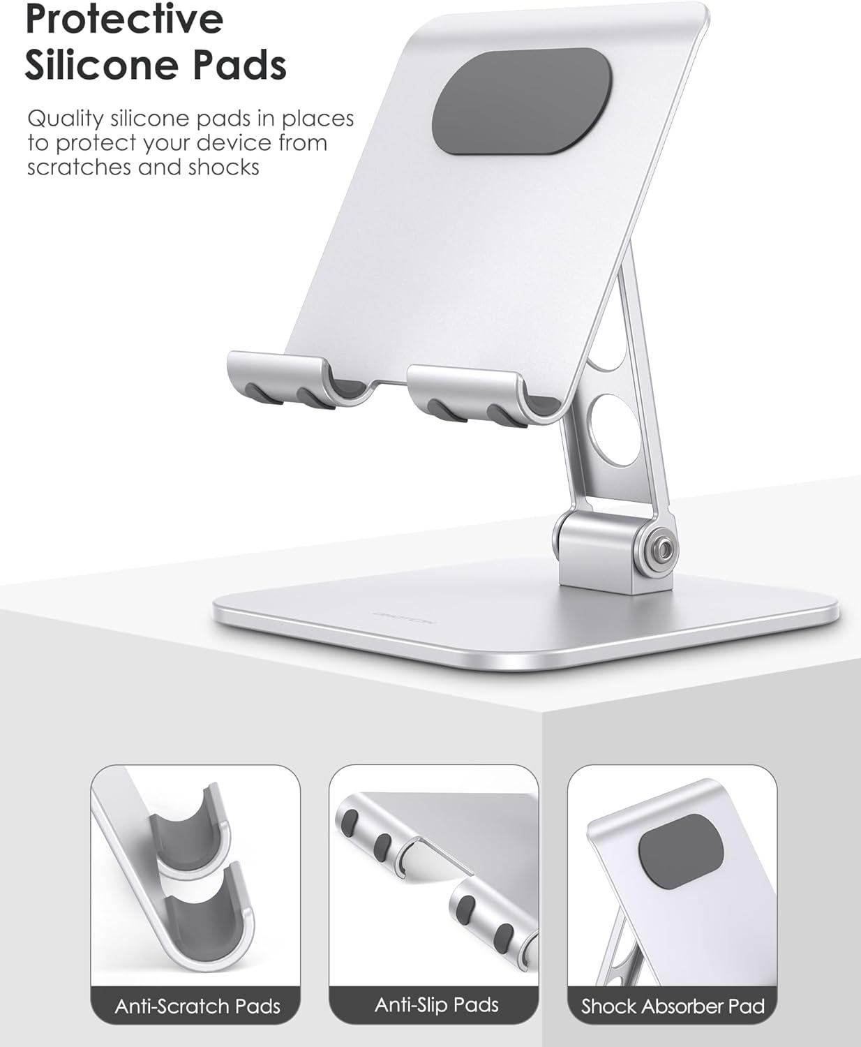 【Anti-scratch and Anti-slip】 The soft rubber pads on the holder guarantee your devices will be supported securely, while the pads on the base prevent sliding, falling, and other potential disasters.