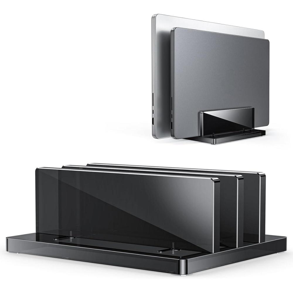 OMOTON Vertical Laptop Stand for Desk, Acrylic Dual Laptop Holder Desktop Clear Adjustable Dock for MacBook Pro Air, HP, All Gaming Laptops up to 17” (Clear, Dual Slot)(Black)