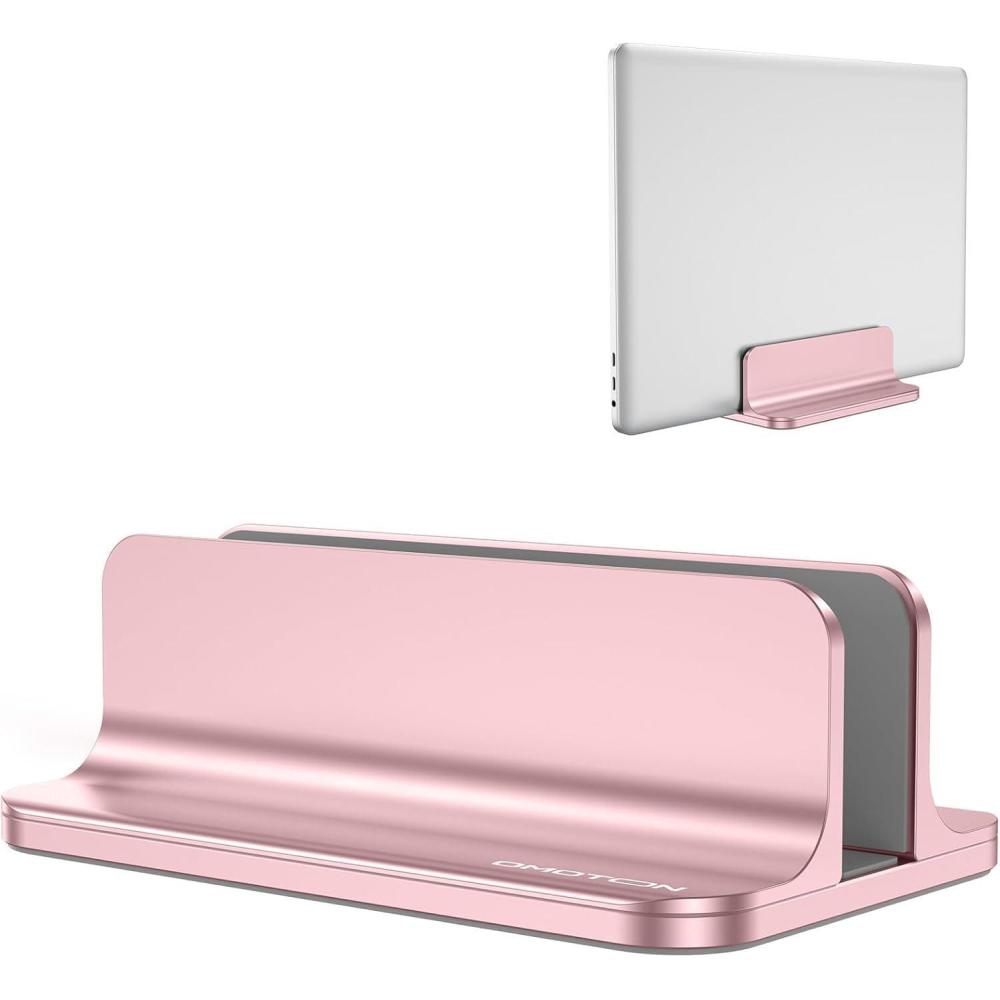 OMOTON Vertical Laptop Stand Holder, Desktop Aluminum Stand for MacBook with Adjustable Dock Size, Fits All MacBook, Surface, Chromebook and Gaming Laptops (Up to 17.3 inches),Black(RoseGold)