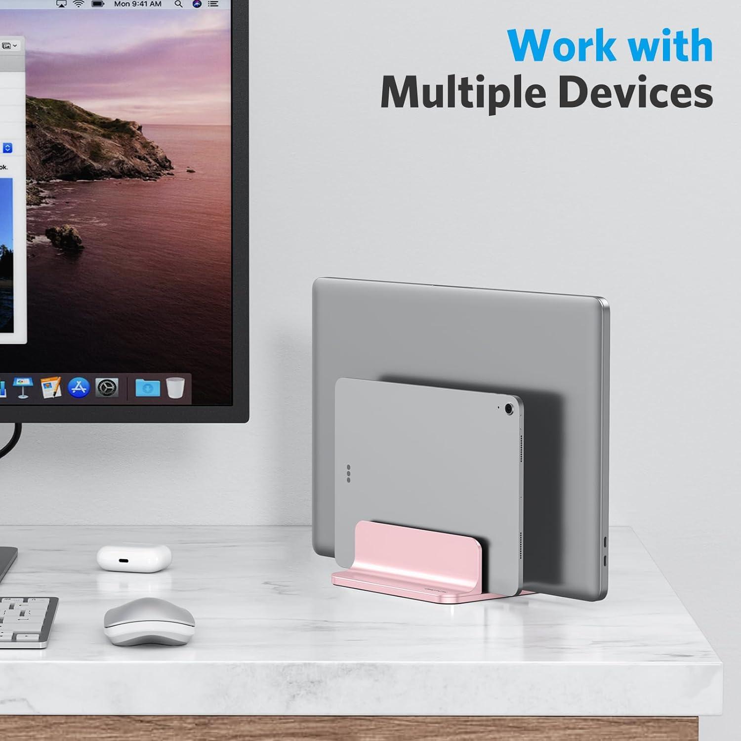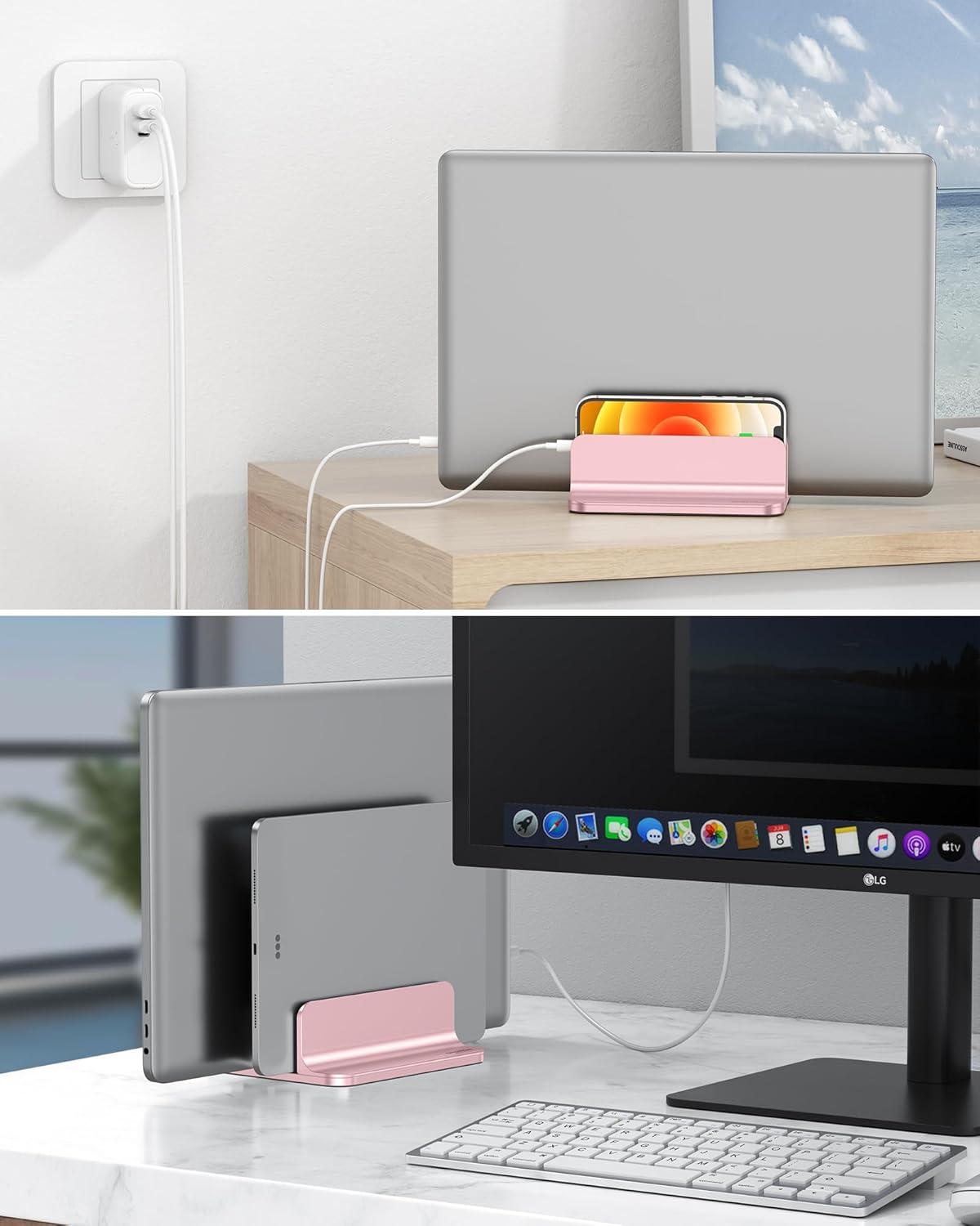 Protective Mat: Non-toxic and non-slip silicone mats cover the laptop slots to avoid scratches on your devices; non-slip silicone pads pads on the base ensure stability and security.