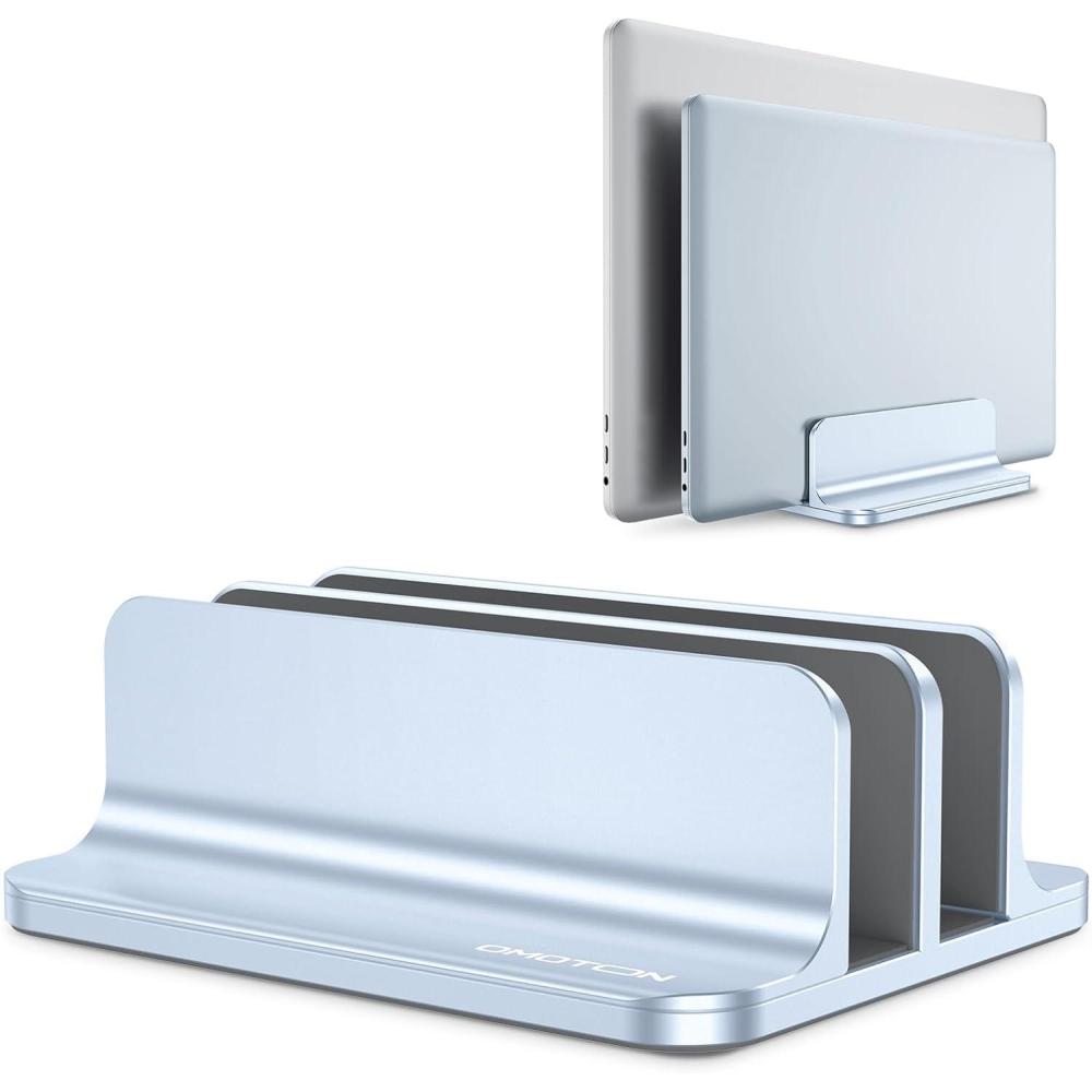 OMOTON Vertical Laptop Stand [Updated Double Version], Desktop Aluminum Mac Book Stand with Adjustable Dock Size, Fits All Mac Book, Surface, Chrome Book and Gaming Laptops (Up to 17.3 inch) (Silver)(SkyBlue)