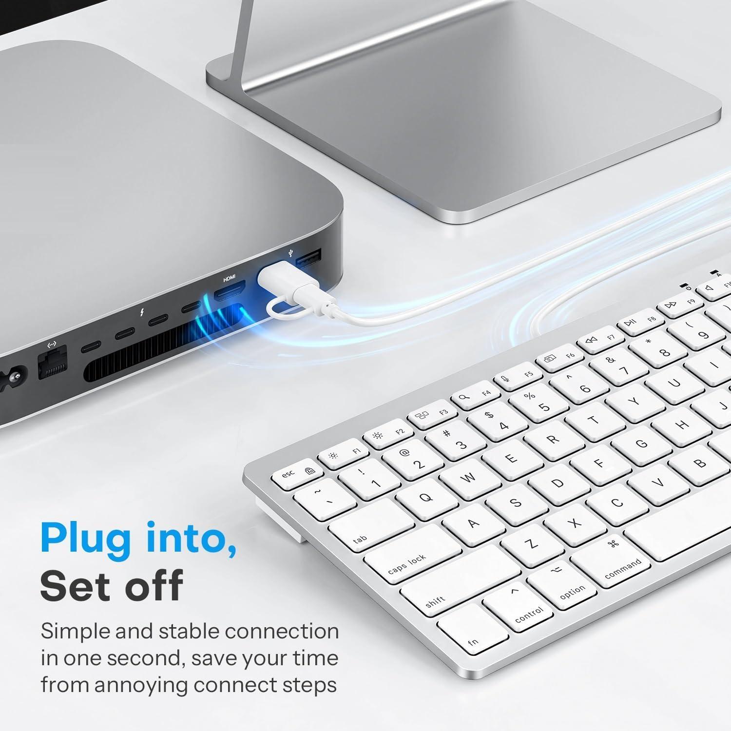 OMOTON Wired Keyboard for Mac Devices ONLY with Dual Interface, Comfortable Typing Angle & Stable Connection, Compatible with MacBook, iMac, Mac mini, PC-White(A-White)