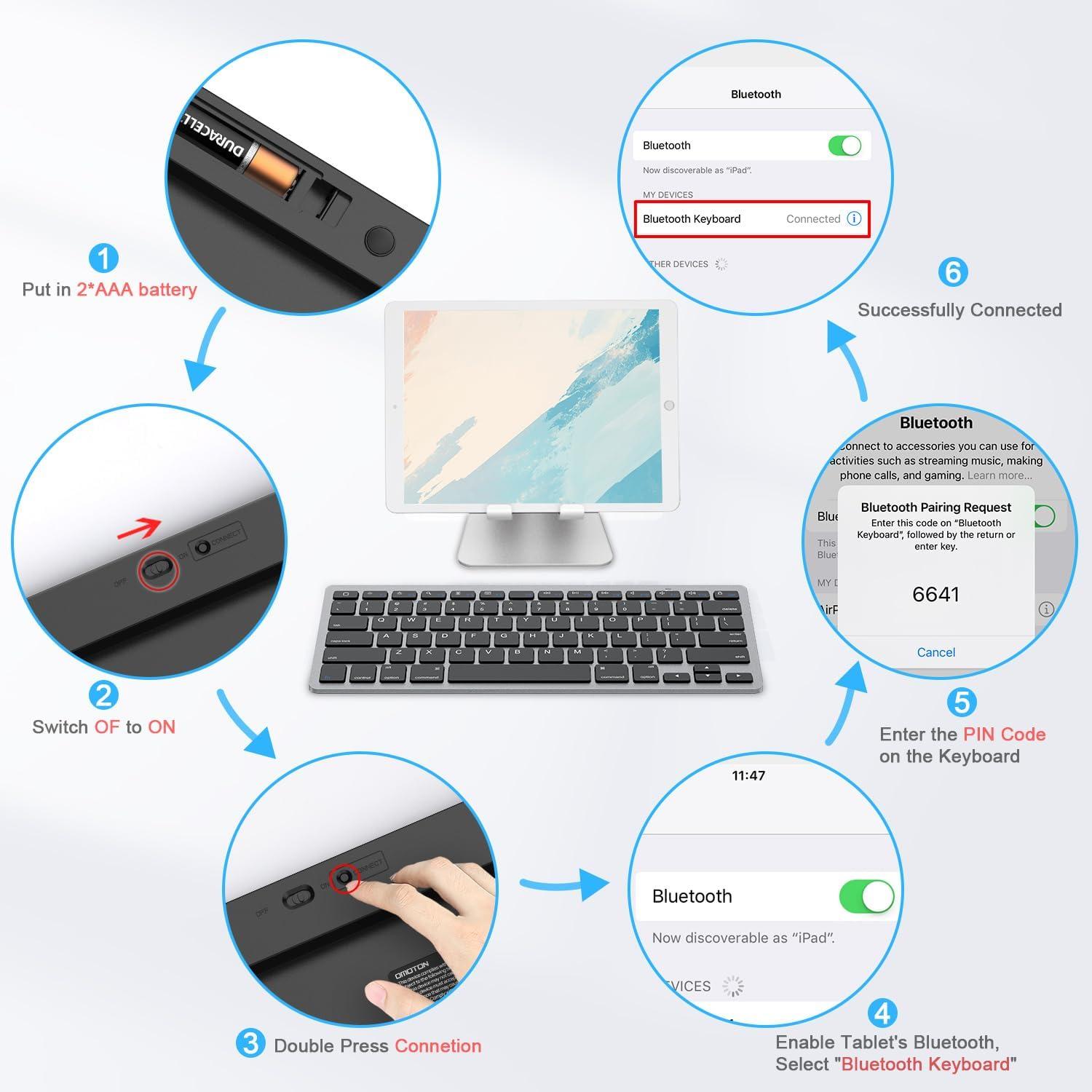 Comfortable Typing: The stable scissor foot support and multimedia function shortcut keys designed for iPad provide you with a more comfortable and efficient working experience