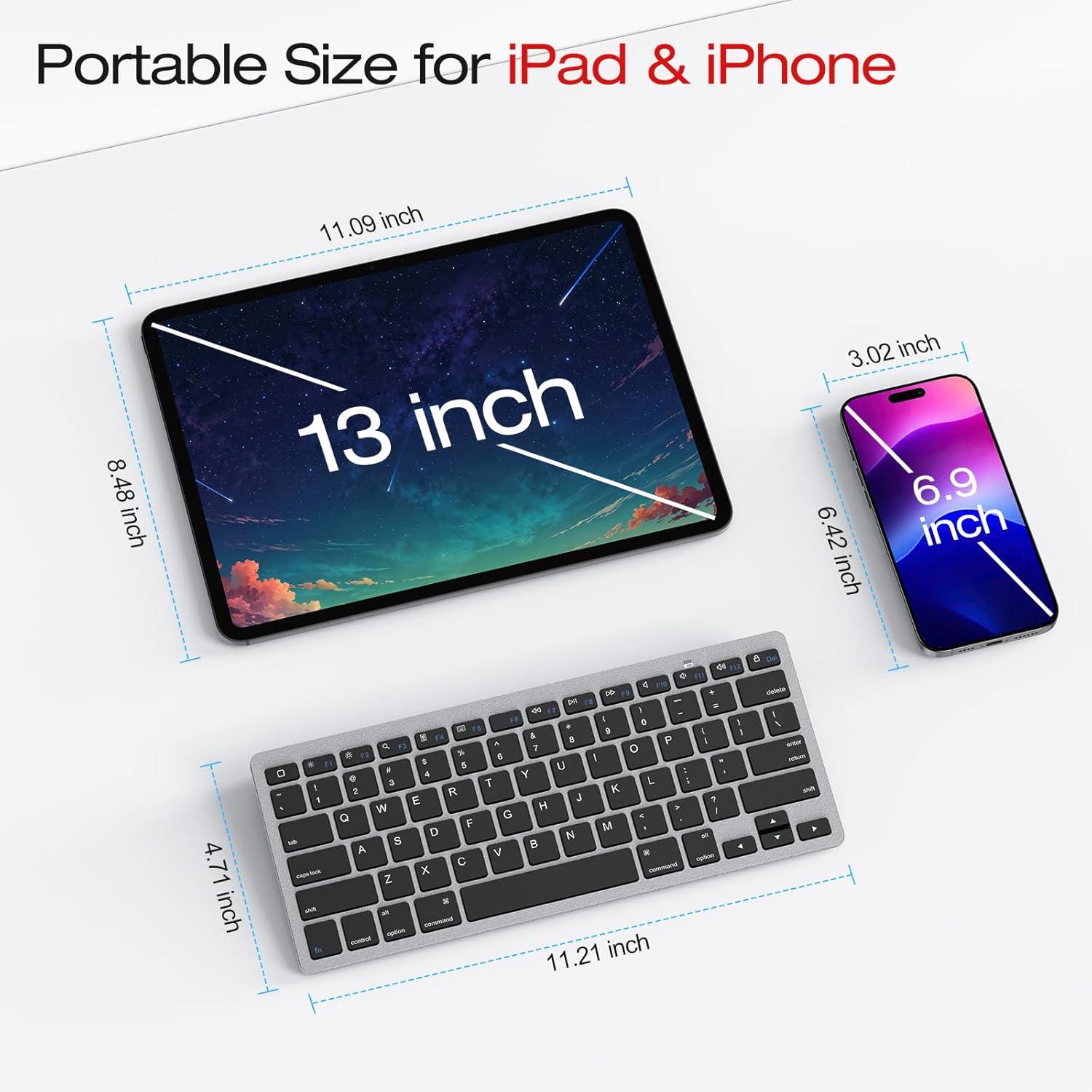OMOTON Wireless Bluetooth Keyboard for iPad A16 11th 10th Generation, iPad Pro 13/12.9/11, iPad Air 13/11/10.9, iPad mini, Compact Ultra Slim Size