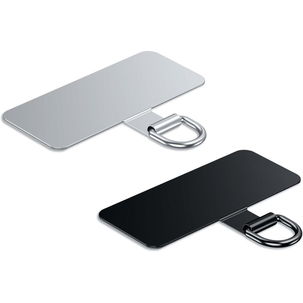Phone Lanyard Tab, Heavy Duty Tether Tab for iPhone & Android, Metal Lanyard Patch & Strap Adapter, 44lbs Load Capacity, Universal Phone Case Insert for Strap & Charm (Black+Black)(Fashion Silver+black)