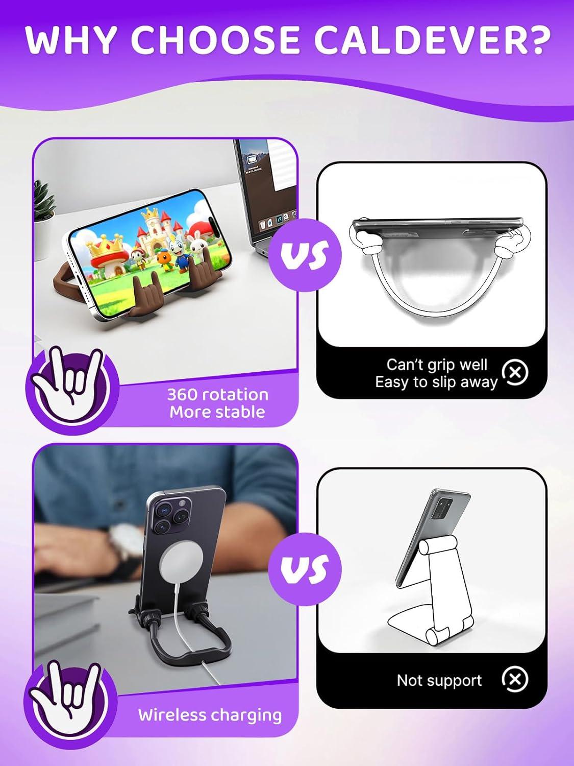 [Easy to Use & Worry-Free Service] The CALDEVER phone stand is incredibly easy to use and perfectly fits most cellphones and tablets. Its adjustable angles help you work efficiently, make life easier, and face everything with a positive attitude. CALDEVER is dedicated to providing a worry-free user experience through our comprehensive after-sales service. If any issues or dissatisfaction, don't hesitate to contact us. Our support team is always ready to assist with any inquiries